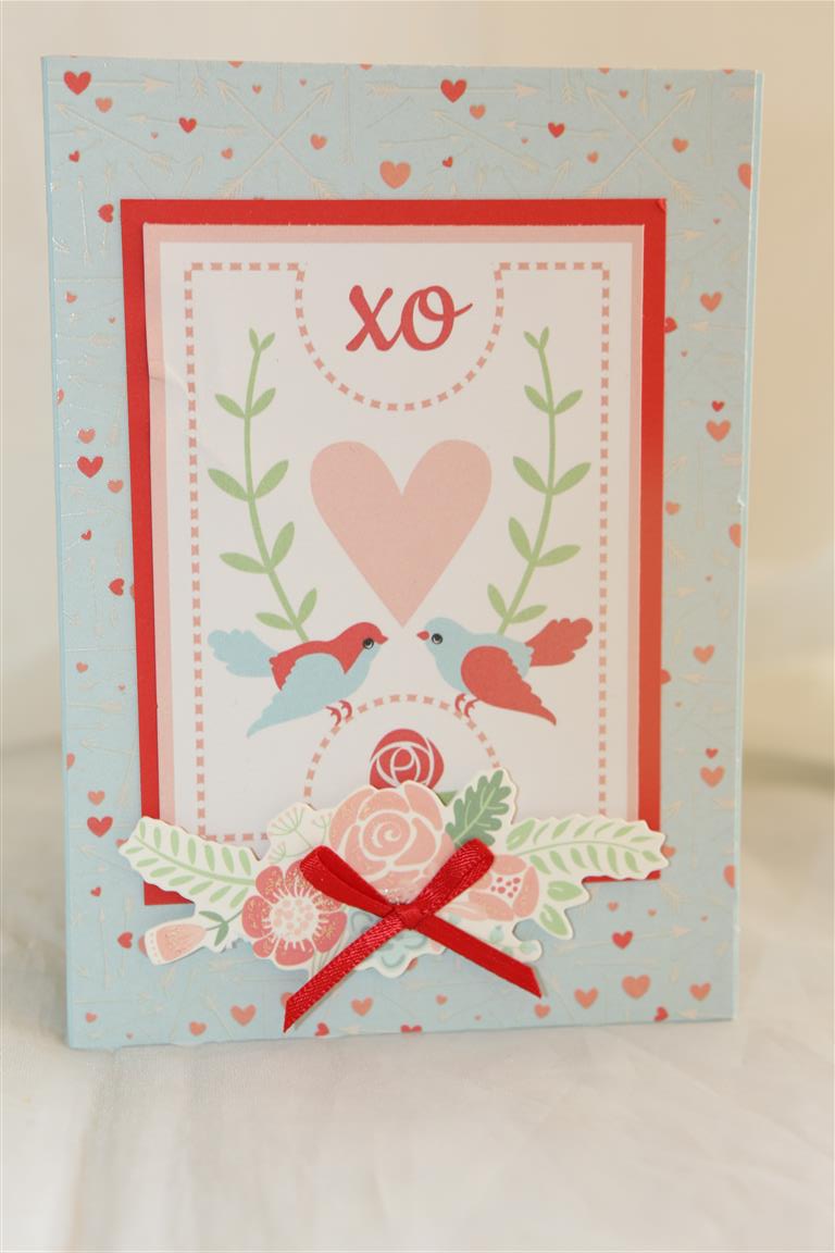 Kaisercraft xo paper collection. The top card ( which will be mum and Dads anniversary card next month) has a card front cut from a piece of 12 x 12 paper and some use of the matching collectables, and a ribbon bow. the bottom card also uses a card front from the 12 x 12 paper, and I have popped on a die cut flower which was sitting handily on my desk, a pearl and a die cut heart. This one I put an engagement verse inside. The cardstock that I used for this whole range of cards is stampin up pool party.Well, it was back to work yesterday,and everything is falling into the work routine, so I must be off or else I will be late for my second day back at work! til tomorrow…..
