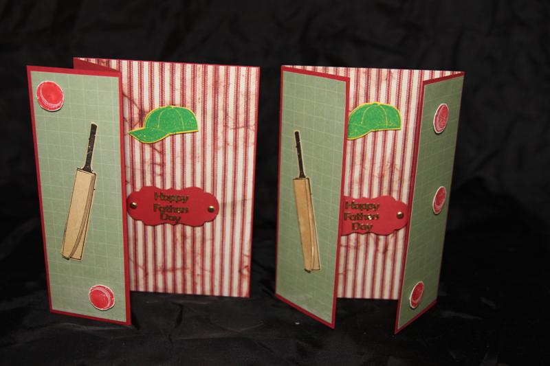 A couple of Fathers day cards, this time using Stampin Up stamp set – Just Cricket – a very handy stamp set to have, Stampin up cardstock – Riding hood red, and Bo Bunny patterned paper, and Kaisercraft paper – Pack your bags collection.I stamped the images on different coloured cardstock, 3d’d some of them and then cut them out. Quick post tonight as I have a couple of orders to make up. Til tomorrow….