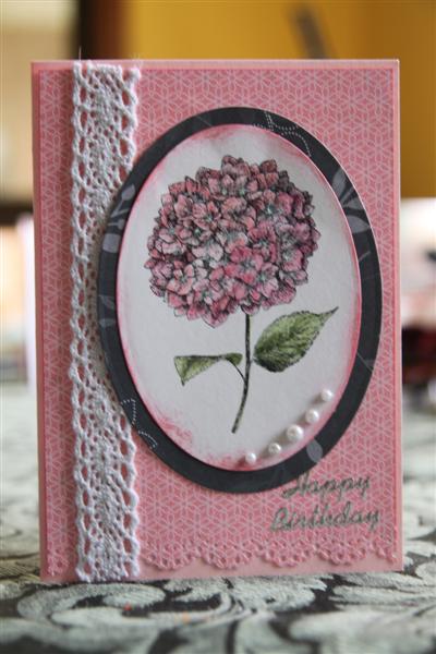 Tonight I have gone back to a stamp set I got recently, but haven’t played enough with! The cardstock is stampin up Pink piroutte, the paper is Stampin Up Walk in the park (retired), and the stamp set is Because I care. The lace is in my craft supply, and I also used Kaisercraft pearls.Tonight I will just finish off a couple of cards I have started, and then early night as I have a very early start for work tomorrow. Til tomorrow….