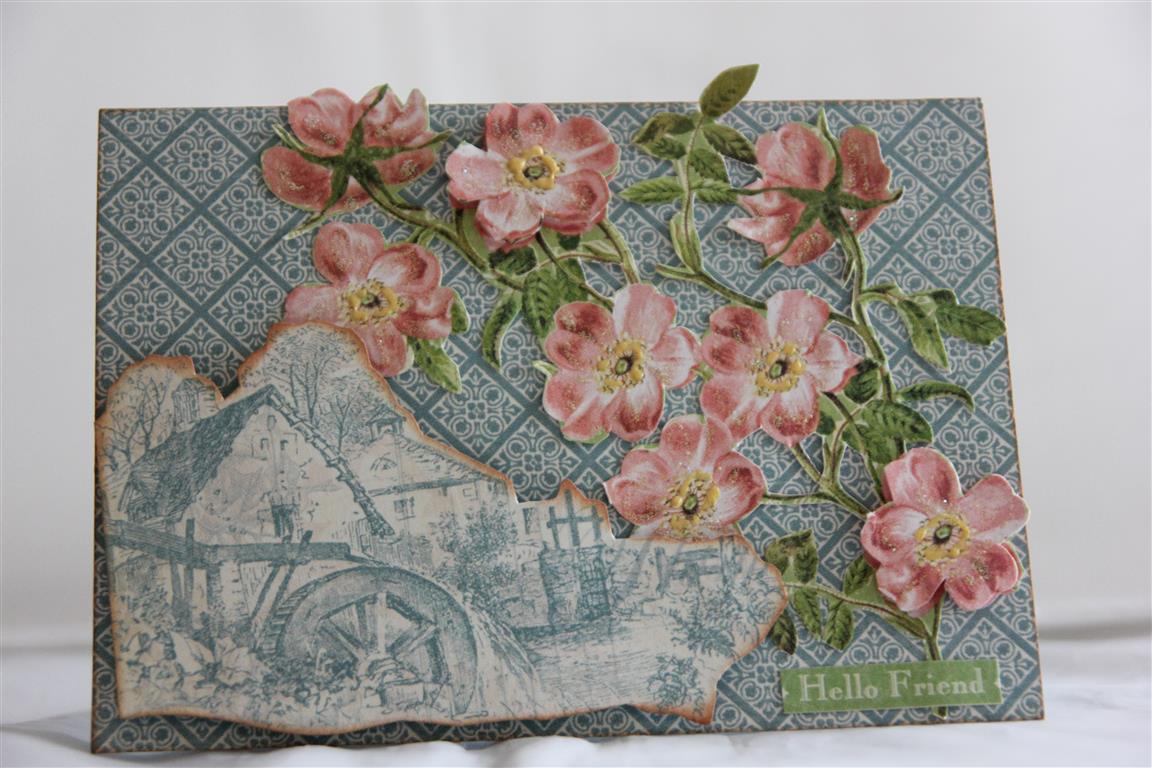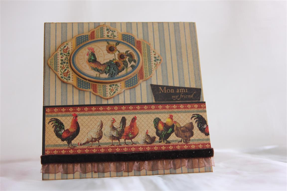 We havent finished with the true romance cards , but we will get back to them – Today I ran a class using Graphic 45 French Country papers, and I had forgotten how much I liked this collection of papers, so i couldn’t resist making some for myself ! For this card, I covered the whole base card with paper, and ran a strip of border paper across the bottom. The sentiment is cut out of some more of the paper, and I used a matching chipboard for the focal point. I have a huge bag of new papers here at my feet, and I can’t wait to have a good look at it all, so Til tomorrow….