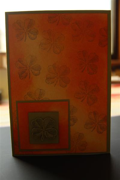A bit excited tonight because I am off to an opening preview of the new shop at Para Vista, Paper Flourish. I have made Tracey and Peter a good luck card, so thought I would show it to you all. I used Stampin Up Old olive cardstock,and Oxford Impressions stamp from the Farm boy set. I coloured the background with Tim Holtz distress inks – Scattered straw and spiced Marmalade. I am still experimenting with this technique, but think I could get to like it!Til Tomorrow….