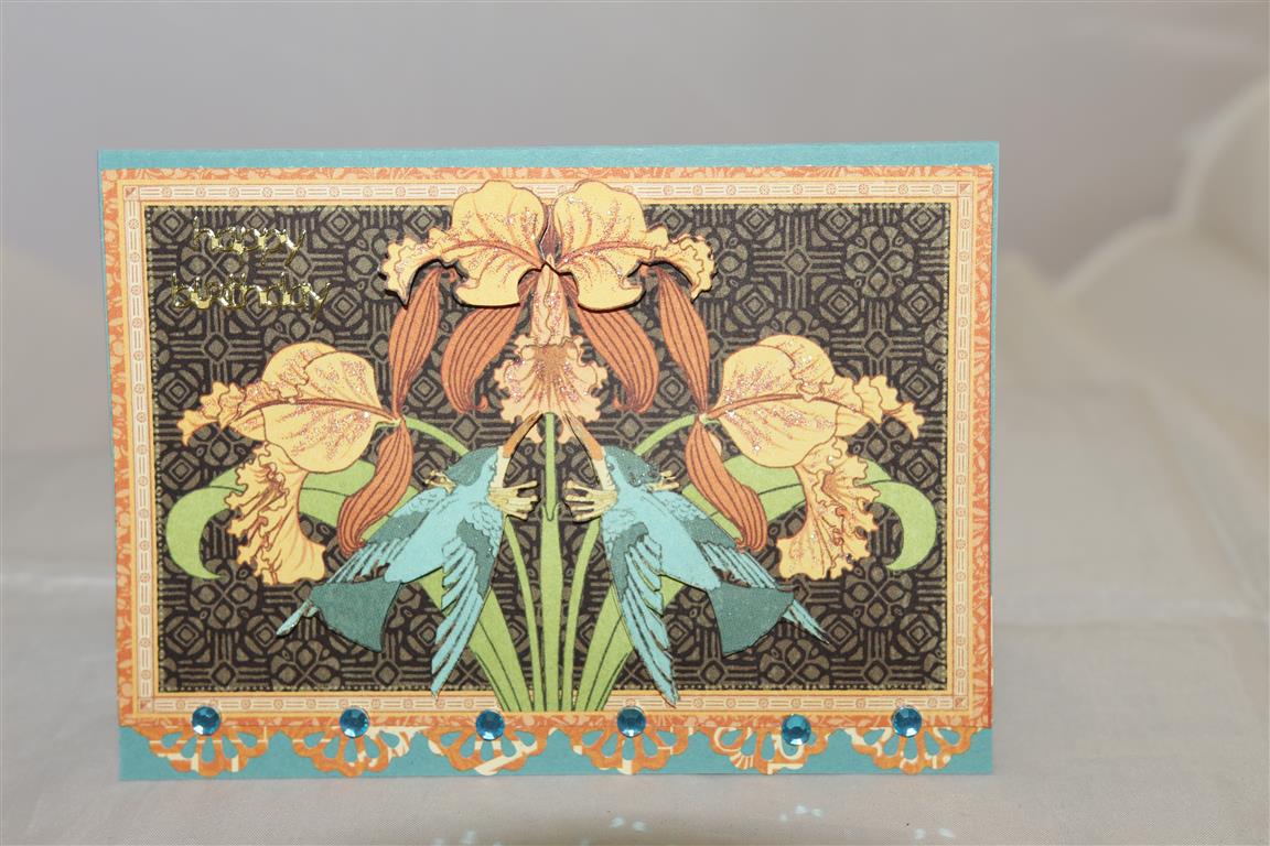 I have found a whole folder of cards that I made last month that I haven’t posted yet. They are a big mix of all sorts, so we will get started – This one is Graphic 45 French Country papers, and I layered 3 in decreasing sizes ( distressing as I went) and added the last one with the image on top. I have a box of great charms, so dug through that to find the keys which I tied together with some string.I had a lovely lesson with my favourite ladies today, and have done a little relaxing this afternoon just finishing up a few projects before I head back to work next week. this weekend will be spent working on some december classes.Til tomorrow….