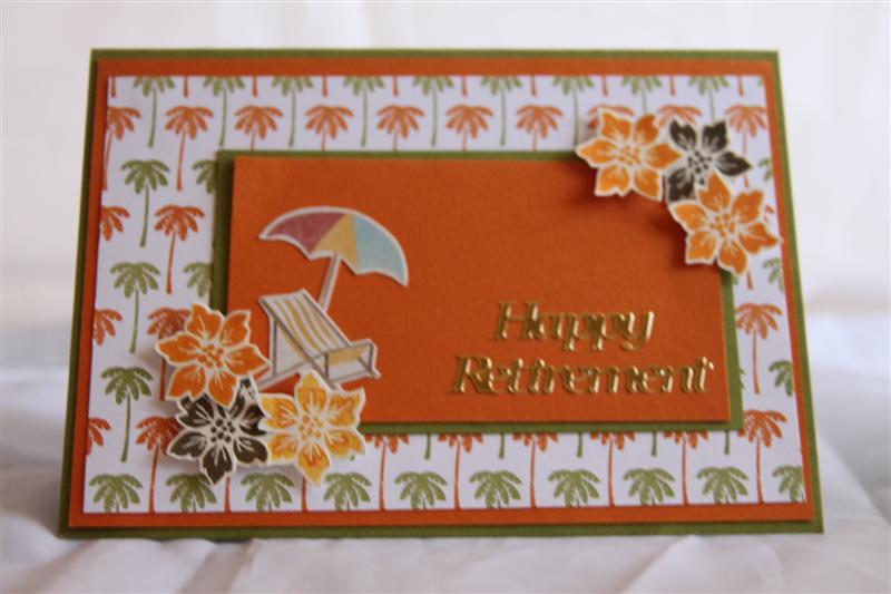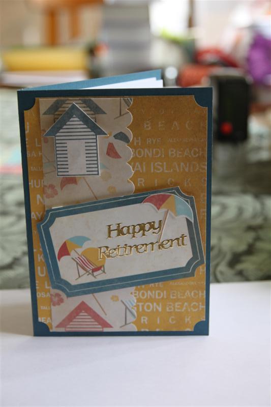 Here is the first card in my Kaisercraft Tropicana series, very appropriate considering the hot weather we are experiencing here just now! On this first card I have used the 6″ pad and matching collectables, as well as some Stampin Up early espresso cardstock and Kaisercraft Sparklets. I think this would make a good retirement card! Til tomorrow….
