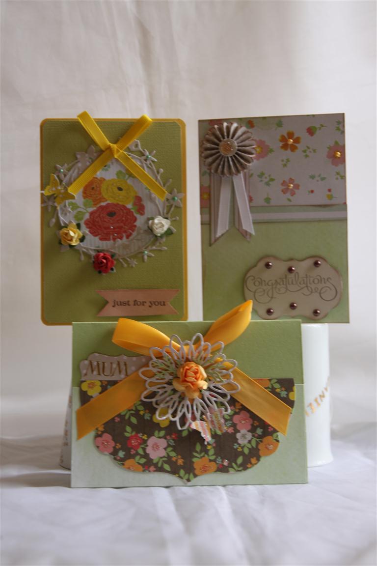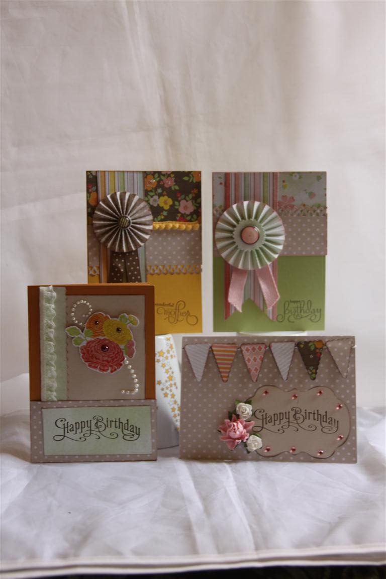 Made a bit of a blue tonight in the naming of my post – I discovered I still had some more American Crafts Neapolitan collection cards left to I have posted the whole lot , so tonight you get 7 cards! I won’t list all my ingredients – if there is anything you want to know just drop me a line – I love hearing from you all! I have used Assorted Stampin Up cardstock, ribbons, flowers, bling, dies and punches. I spent some time last night in the craft room playing with my new Stampin Up goodies, and I have a new favourite colour combination – pale pink and deep grey – try it – it’s very posh!I am shopping early tonight so that I can get back into the room and plan some lessons, I think that colour combo will feature! Til tomorrow….