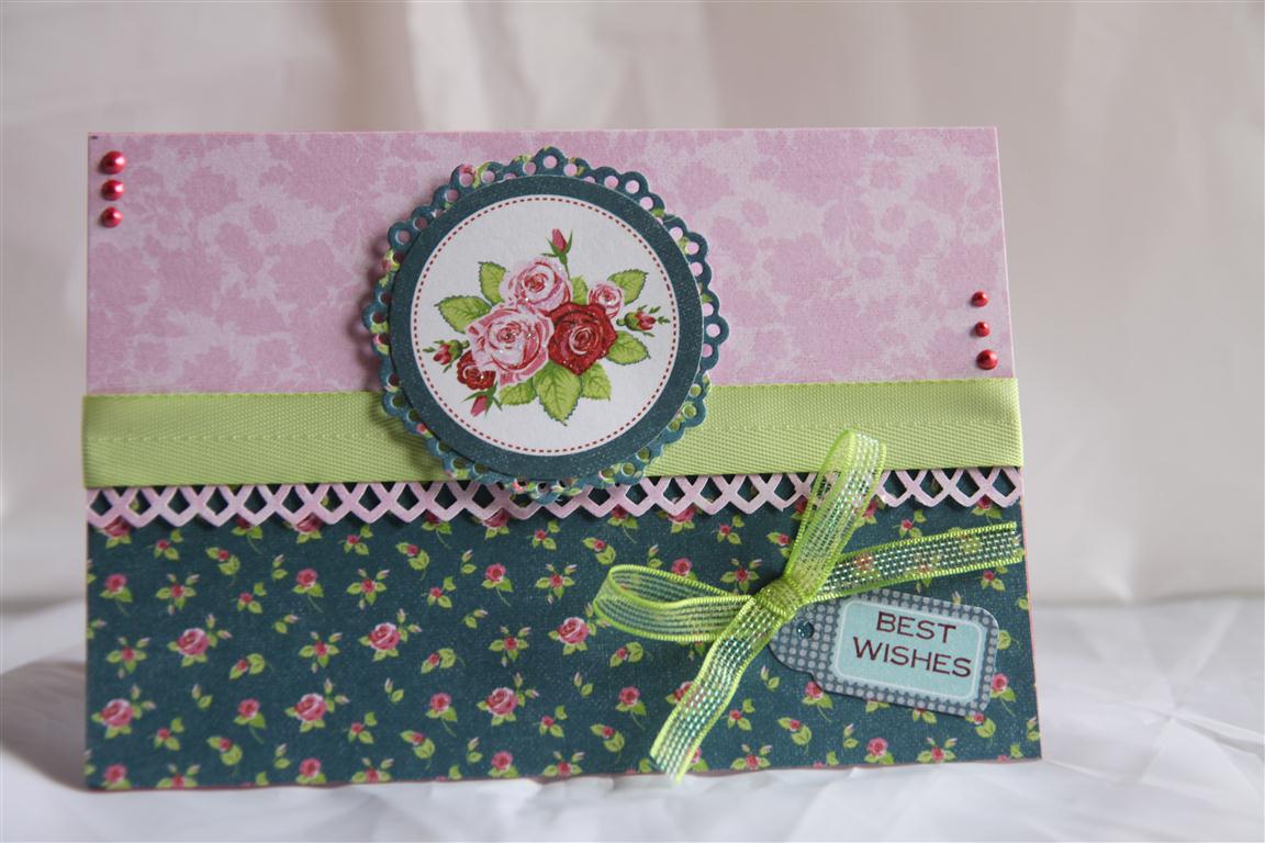 I thpought I would show another card I made on the weekend with kaisercrafts new range – Miss nellie. I have used the 6″ paper pad, and some ribbon, liquid pearls and a martha stewart punch. I like this paper, because the colours are so different to the last few flowery papers they have released – nice and bright! Til tomorrow….