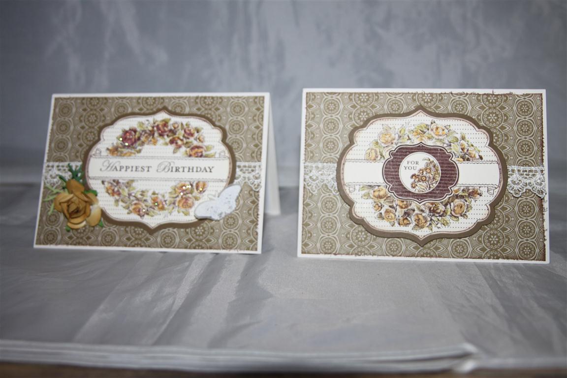 Stampin Up have a great new little catalogue out, and I have bought quite a lot from it as I love the papers and stamps they have come up with so over the next few days you will be seeing what I have made with my new purchases! Â Todays card are made using the Apothecary Art stamps, and the Labels Collection die , which fit exactly to the stamps – no fussy cutting involved! I have coloured the images with my ink pads and a blender pen,and haven’t been too fussy – just quickly colouring over more to tint , and matted all on a piece of Soft suede cardstock, cut using the next size up in the labels dies.The background paper is Stampin Up Attic Boutique designer papers. the other side of this paper had gorgeous big roses on it, so it was a hard decision to use this side! A bit of punched greenery( martha Stewart punch) , flower and lace on one card and just the lace on the other.This stamp set has great potential, and I am looking forward to finding some more time in the craft room to create more with it1 Very early post today as I am teaching over at the retirement village this evening and I still have to get all my gear together! Til tomorrow…P.S. if you are interested in one of the Stampin Up mini catalogues, contact Kay – there is a link to her blog on the right hand side of my blog.