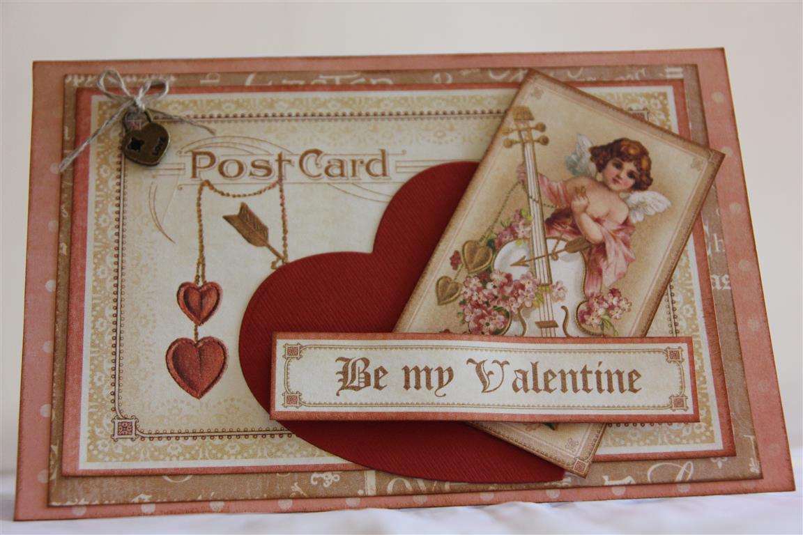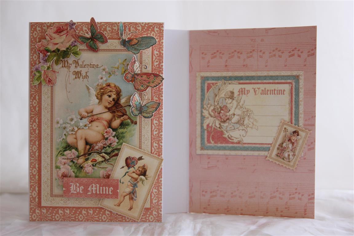 I bought a 12 x 12 pad of Graphic 45 Sweet Sentiments paper, and there are lots of images on this paper for valentines day cards and easter cards. This week I have been making some Easter cards , but previously I made a couple of valentines Day cards – this is the first one.Nothing on this card except for the papers – layered and fussy cut. Some fancy photography by Nathan managed to put an image of the inside of the card on the right hand side of the card front.the layer of paper used on the inside is actually My Minds Eye now that I look closely!That crossover of paper companys very rarely happens in my world! I taught a lovely class of ladies this morning, and I am looking forward to a long weekend of crafting. Til tomorrow….