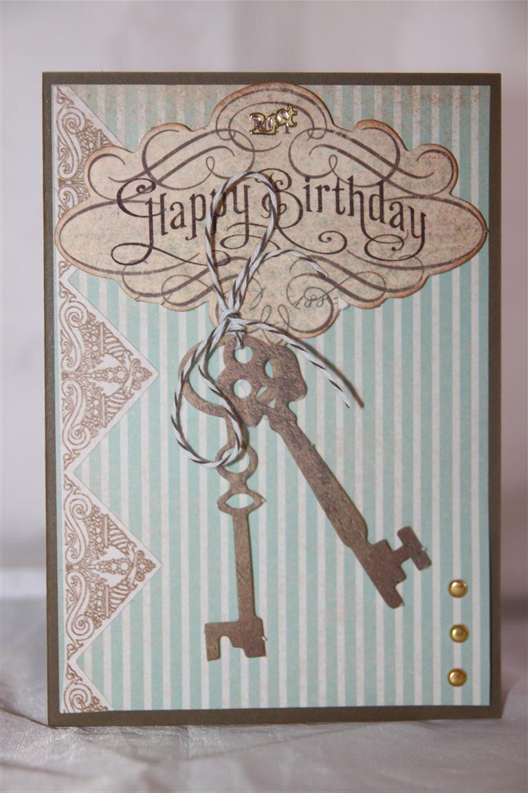 Still with our series of kaisercraft these days paper collection, it was perfect to make this 21st card. the keys were in the bag of collectables. i am so glad kaisercraft are bringing these little bag of goodies out with all their collections – such good value.The only extras on this card are the gold brads, bakers twine and the Stampin Up stamp from the perfectly Penned set. Til tomorrow….