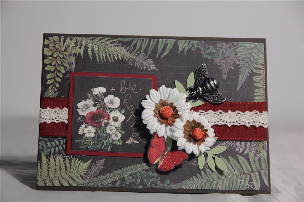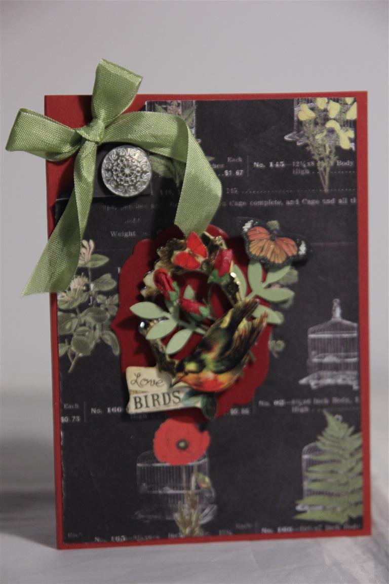 I have taken a break from the spring cleaning to post the next two cards in my Prima Forever Green series.Everything used is from the collection with the exception of the ribbons,brad and cardstock and that is from Stampin Up.I love the extra bits and pieces that came out with this collection! Til tomorrow….