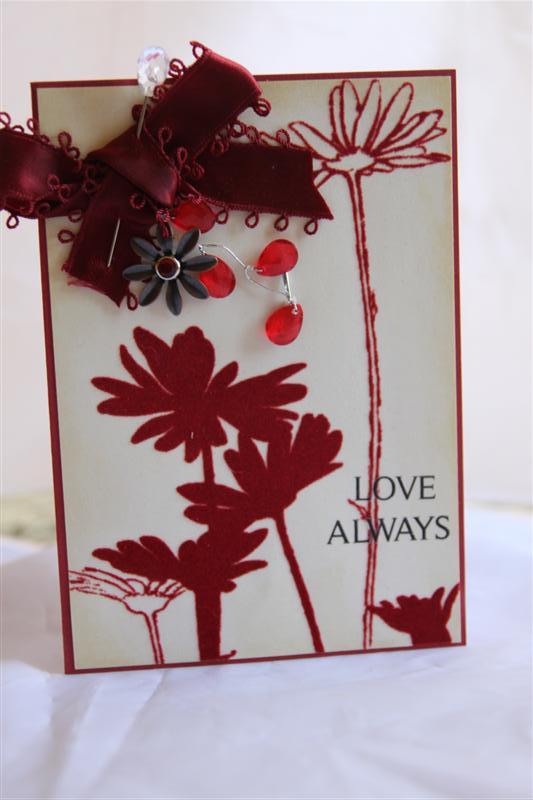 Happy Mothers Day! Todays card is made from My minds Eye Lush paper,ribbon and brad,a Maya road stick pin, Tim Holtz metal flower, magnolia jewels and a Kaisercraft Rub-on.Lots of product on that one! Quick post today as my boys are taking me out to tea ( I think)I was very lucky and got a Zutter Bind – it all for Mothers day, so now I’m off to make a book so that I can play with it! Til tomorrow….