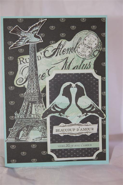 I put this card together from scraps of Kaisercraft Bonjour patterned paper. Because it was for my sisters wedding anniversary I didn’t want it too blingy – her hubby is not a blingy kind of guy – I see I can do unblingy when I try, but gee it was difficult! Day off tomorrow, so after a visit to paper flourish to set up januarys lesson, I will be found in the craft room – Yay!! Til tomorrow….