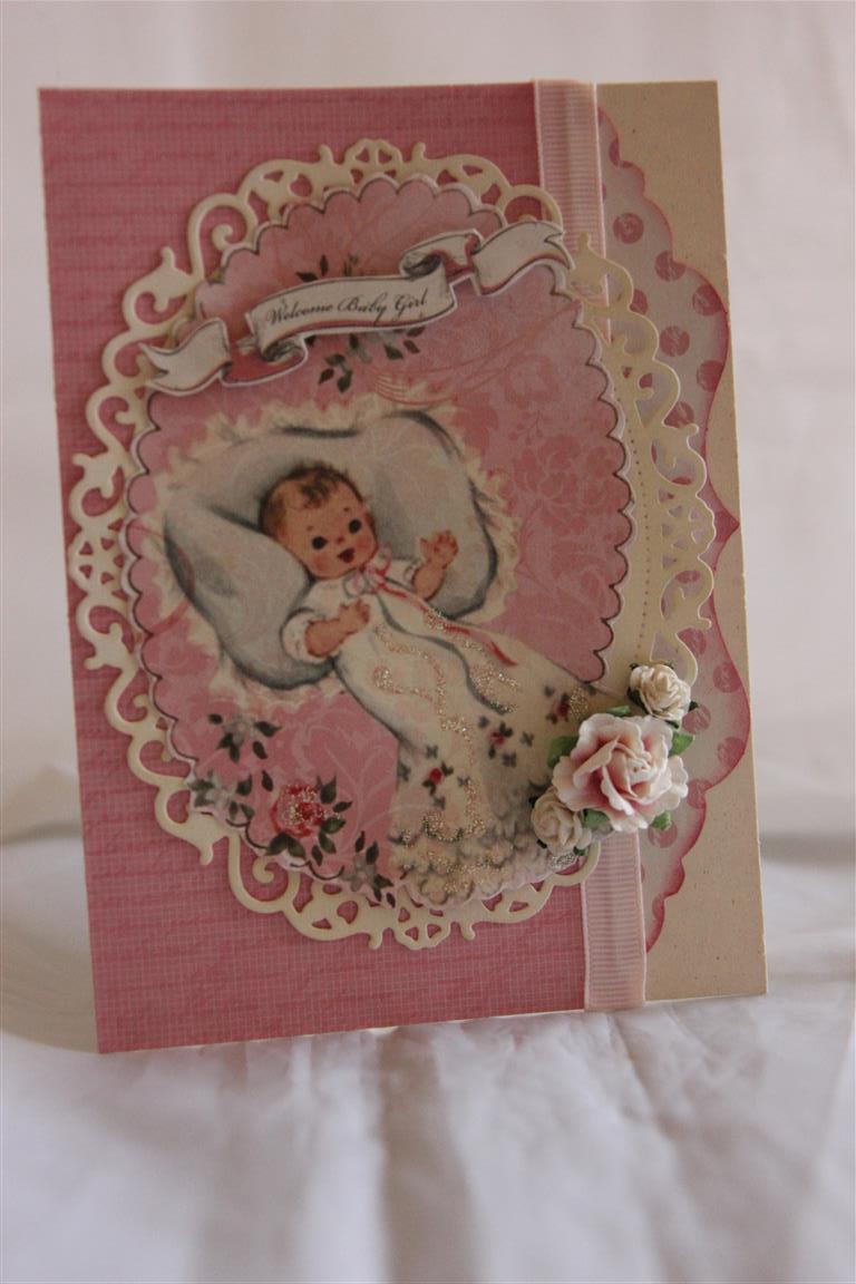 Two cards today because I have been missing on the blog this week, had a few Dr’s appointments to sort out my knee which has been playing up. Turns out it’s arthritis, so I will just have to get used to it,I am just so relieved it isn’t a cartlidge problem again!Todays cards are made using Kaisercraft Peek a boo in the girls colours. I also used the Kaisecraft dies for the pram and the word baby.I used a matching collectable to pop into the pram on the top card, and for the bottom card I punched a circle and added googly eyes to represent a baby peeking out of the pram ( I like this one – the fun nature of it). Went to town with the lace , ribbon and buttons! Day off today so i am off to the craft room to sit and relax for a couple of hours at least, til tomorrow…..