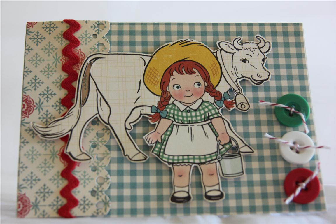 Number 5 in my October afternoon farm Girl series, and for this one I used a lovely gingham patterned paper to cover my card blank,and a strip of paper on the side, punched with a martha stewart punch, and highlighted with a little ric rac. three lovly buttons threaded with bakers twine down the opposite side, and I fussy cut the farm girl from another piece of the patterned paper.Thats the last of the animal images, tomorrow we move on to what else you can do with this wonderful collection.I taught a class this morning with my lovely ladies, and had a terrific time with them, as always. I came home full of ideas for my March classes, so have been creating in the craft room, and will head back there now while I am in the Zone! Til tomorrow….