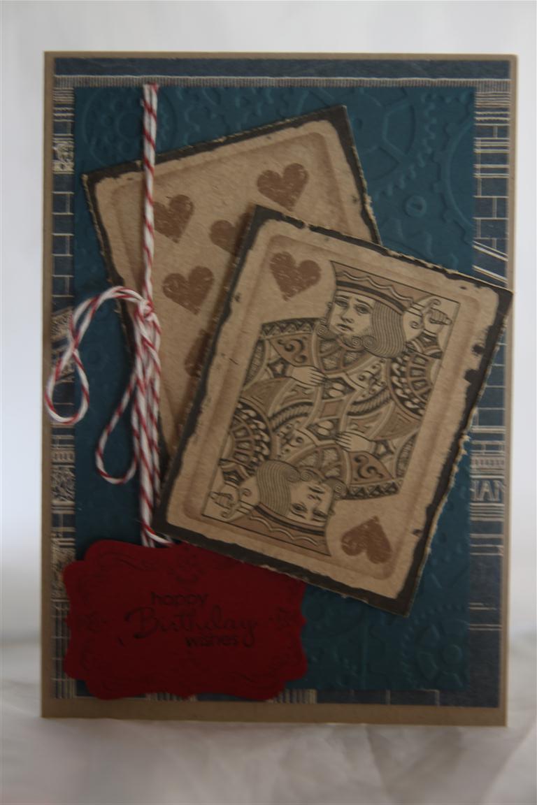 I bought a couple of sheets of Graphic 45 new range – Kraft Reflections because I thought they would make great mens cards, and this is my first design. I used some graphic 45 A proper Gentleman patterned paper, and some stampin up cardstock run through the cuttlebug witth a cuttlebug clockworks folder. The bakers twine is from stampin up.I have used lots of this bakers twine – it comes as a 25metre buy, and I am probably going to have to buy more! Back at work today – very sore feet – I will just be relaxing tonight! Til tomorrow…..