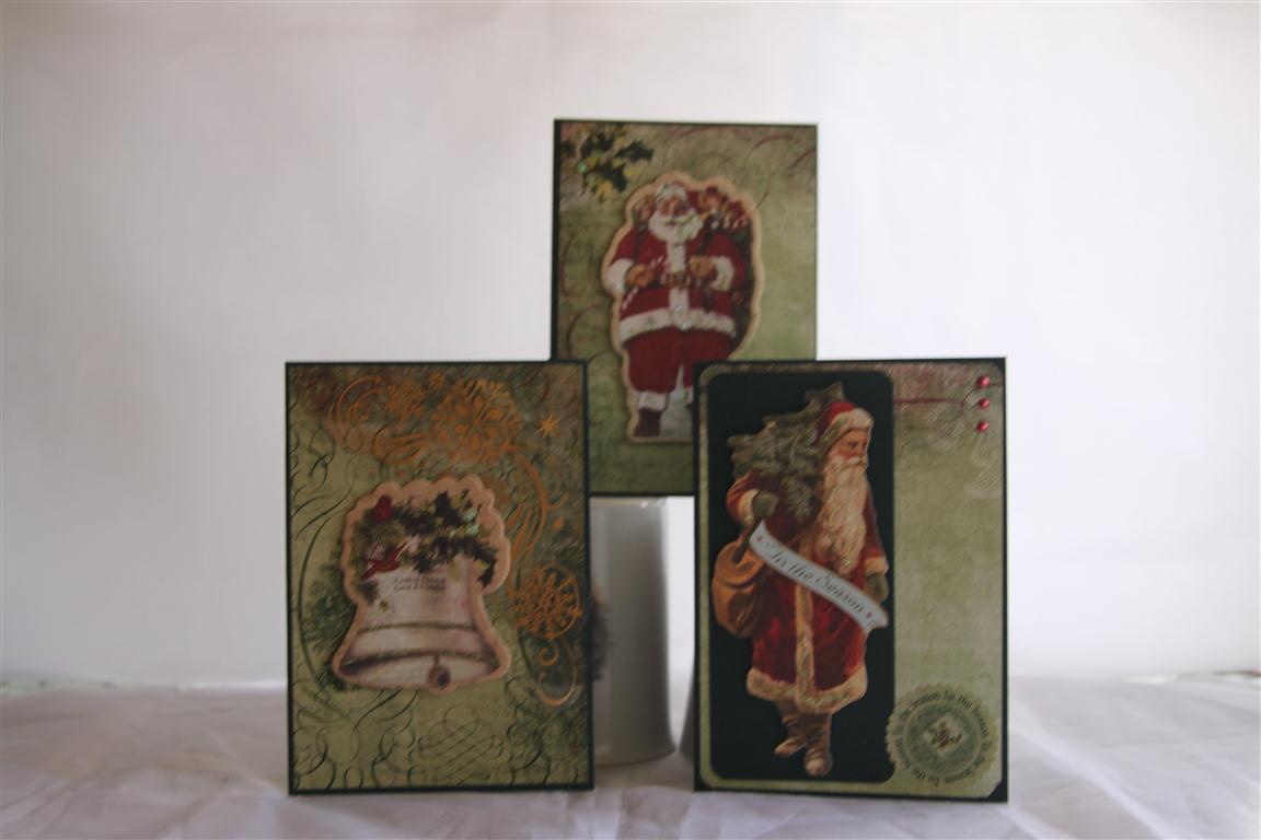 Welcome to my new subscriber! Today I have 3 cards to show you all. I have used Bo Bunny Father Christmas paper – gorgeous- and the matching chipboard. these cards were so easy – they made themselves. No thinking required! The cardstock which goes so well with the paper is Stampin Up Handsome Hunter which I think is no longer available but I stocked up on it because I love it for xmas cards. Don’t know what I will do next year! Looking forward to getting into the craft room over the next couple of days.. til tomorrow…..