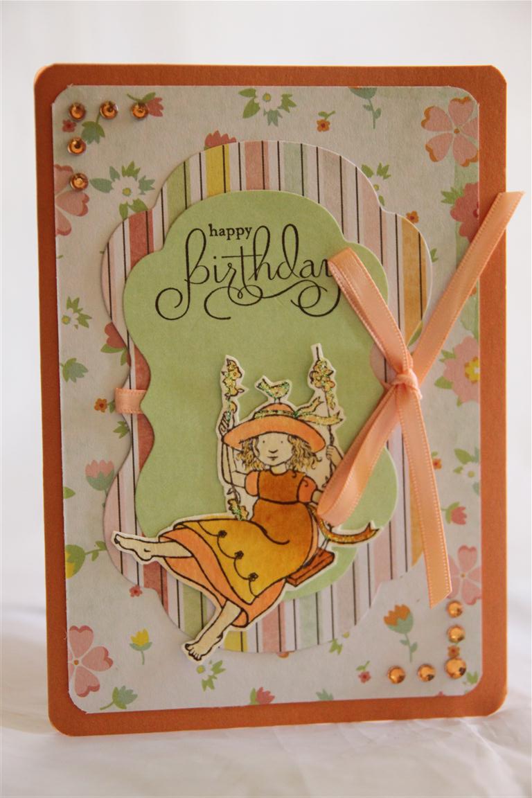 Although we have finished our sketch series, I still had a fair amount of American Crafts neapolitan paper left, and so created this card, with a stamp I have had for a long time, but rarely inked. I wanted to practise my colouring with tim holtz distress inks, and I am pleased with this first attempt, but don’t look too closely! The stamp is from Stampin Up – A kind word set, and I teamed it with stampin Up cardstock – tangerine Tango and a bit of ribbon and Kaisercraft Rhinestones to complete. I hope to spend a little time in the craft room ( or studio as Nathan calls it and I must admit I like the sound of that description!) tonight as my back appears to have mended itself… Til tomorrow….