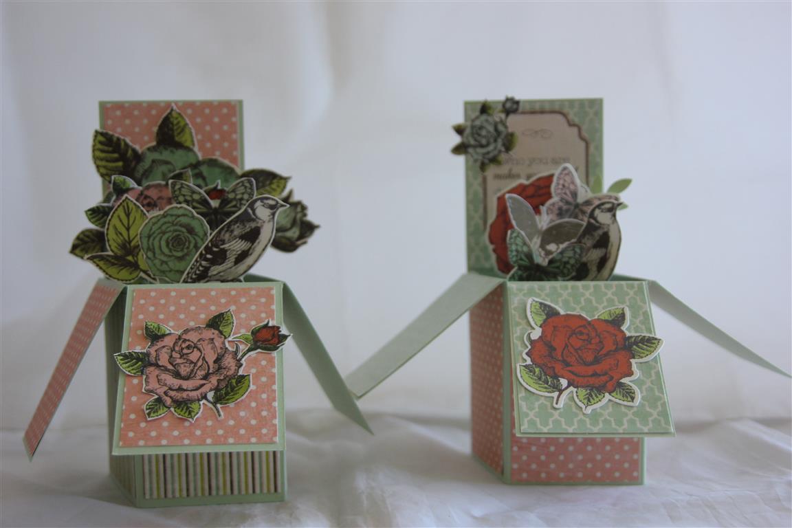 These two cards are the reason I had this paper ( kaisercraft Little one) out on my desk the other day. I fussy cut the elephants and owls out of some of the 12 x 12 papers in the collection, and made my boxes ( video coming I promise – they are so simple you will be amazed!) and fixed the fussy cutting onto strips of acetate.they wobble about nicely!I have since had to make more owls cards because the three I initially made have gone – I sent one to my Auntie in Perth and it handled the post perfectly and was only the cost of a normal stamp! Much cooler day here and after the week of humidity we have had it is so welcome. Looking forward to a weekend of playing with my new stampin up supplies! til tomorrow…..