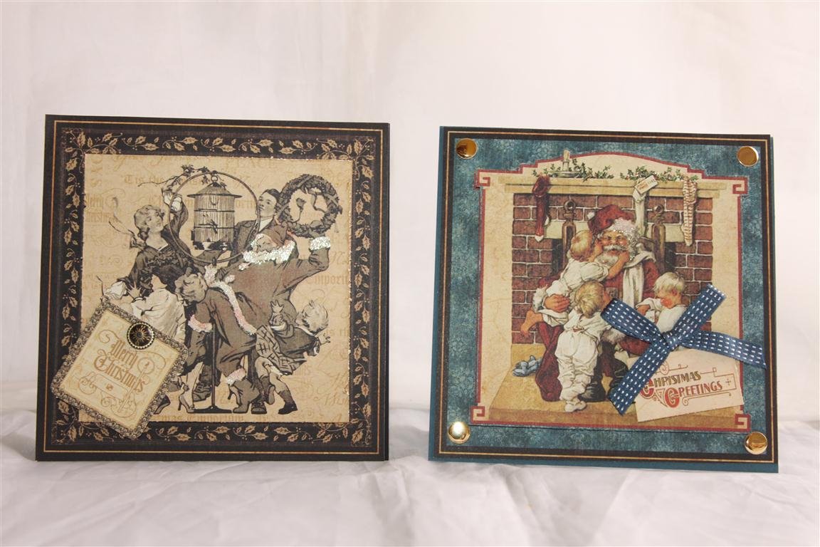 We are back to some christmas cards, and i have used Graphic 45 Christmas Emporium paper collection, which is last years release, but I had a big pad tucked wasy which I didn’t use last year, and i was very excited to stumble upon it,as graphic 45 is one of my favourite paper companys! I made these two cards as 6×6 cards, I don’t often do that size, but the images are large and I didn’t want to cut into them. For the card on the left, I did a little layering, inking and distressing and added a tag with a stampin up vintage brad. For the card on the right I also layered, ( no distressing) ans added gold craftworks candi, and a stampin up midnight muse ribbon bow. Had agreat class today with my monday ladies, and also bought a few new male themed stamps to play with – one month soon the ladies are going to do male cards!Til tomorrow….