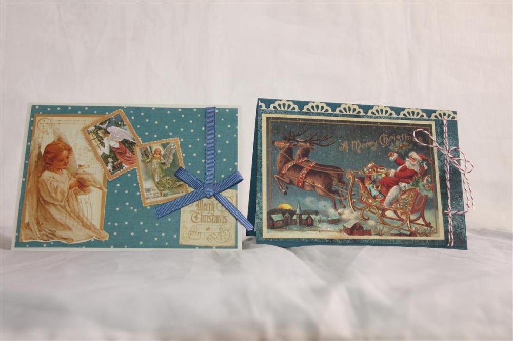 Although I have titled these cards Graphic 45 Christmas Emporium, I think a little bit of graphic 45 Christmas Past from the previous year has crept into these ones – just goes to show – never throw away those scraps! also explains why I cant move in my craft room at the moment. The time is coming for a ruthless clean up. These cards are self explanitory, a bit of fussy cutting of the images, some layering and bakers twine and ribbon added for texture and interest.I also see I used an ek success border punch on the card on the right. Til tomorrow….