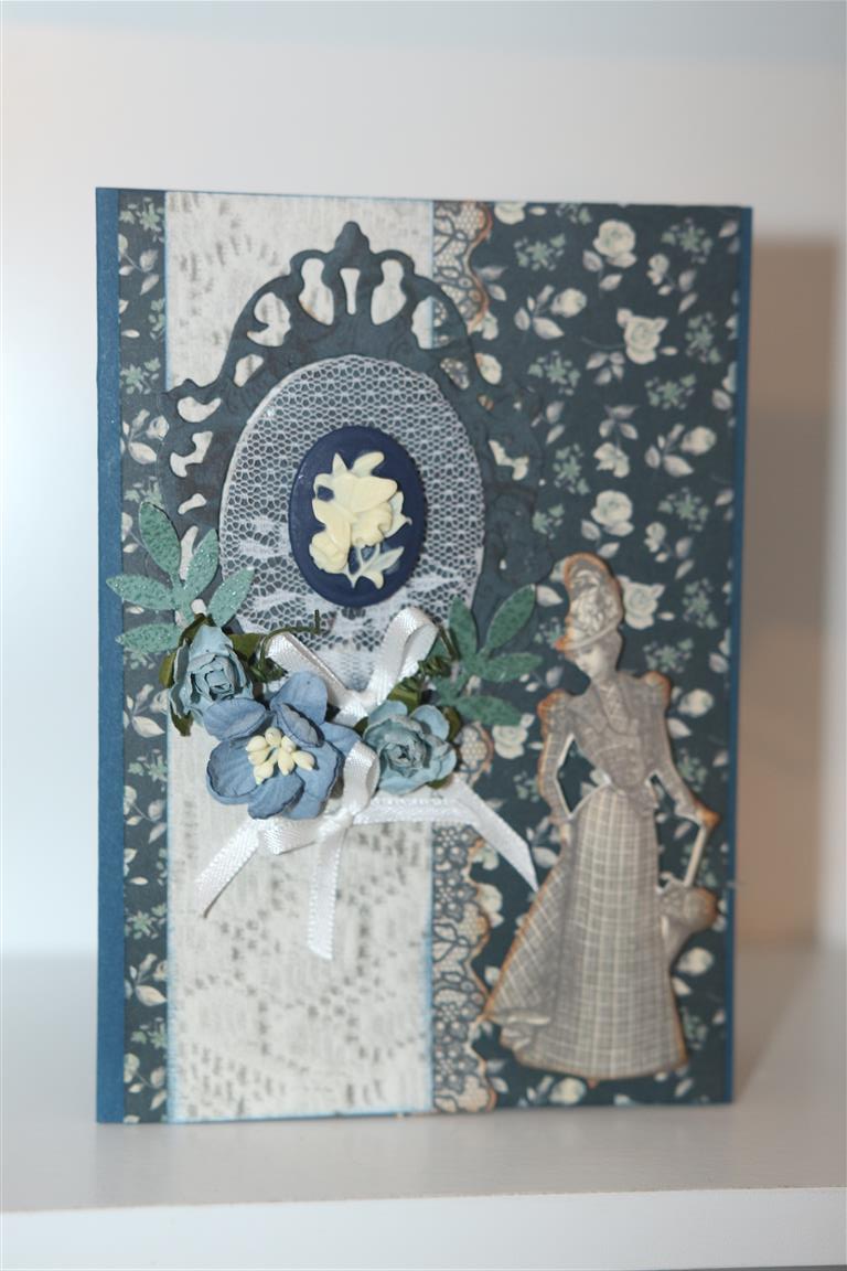 Recently I bought some of kaisercraft’s recent release – Betsys Couture. I knew once I started with this paper it would be hard to stop, so we have quite a few here in the queue! Before I started I die cut a few Ornate frames ( Kaisercraft die) so that I wouldn’t have to interrupt the creative process by bobbing up and down to the big shot.I used one on this card, wrapped the inner oval with lace and stuck on a websters pages cameo – I have a little box on my table full of these little odds and ends from other projects, and often use bits from it on projects.The papers were from the 6″ pad,as was the lady who I fussy cut out of the paper. sponged around all the edges with tea dye ink, flowers, punched leaves and ribbon to finish.My back is almost better today, and I am sure it will be perfect for work tomorrow! At lats i am able to sit, although not for to long, but long enough for me to relax in the craft room for a little while this afternoon. Til tomorrow…..