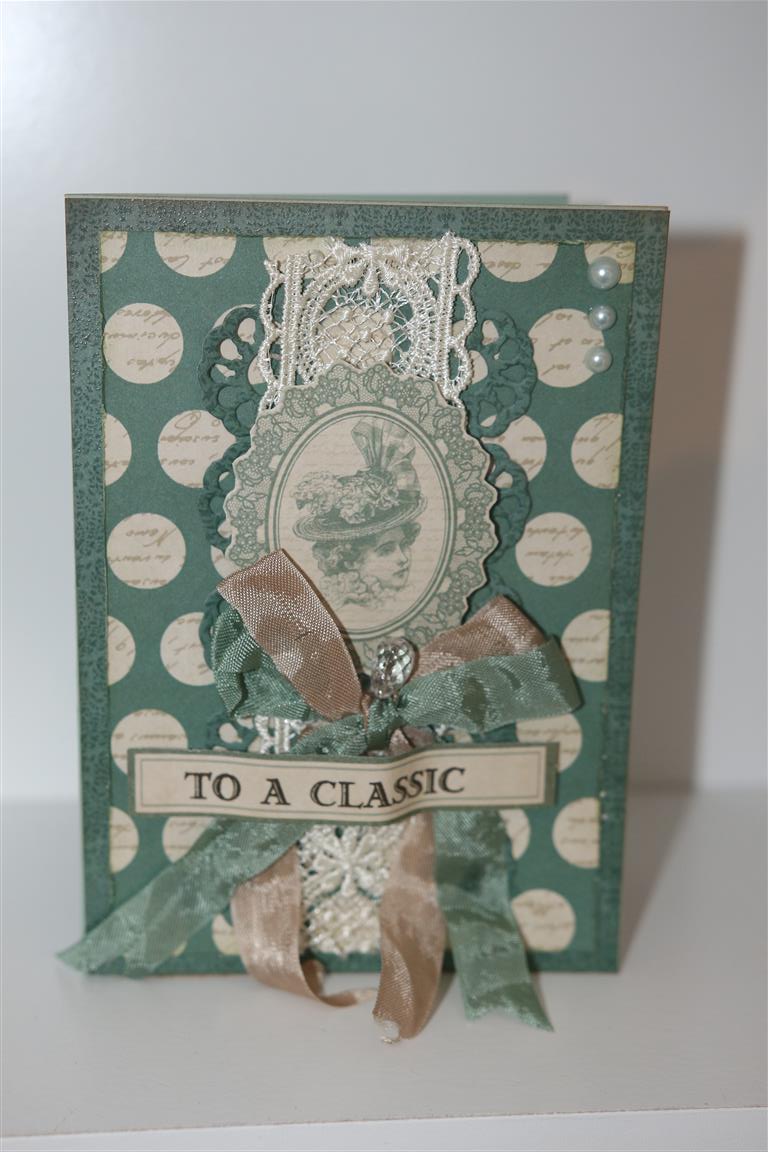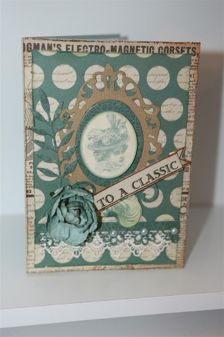 Two more vintage cards today, using the Kaisercraft betsys couture paper collection.Top card…12 x 12 papers,collectables,kaisercraft flourish die, flowers and lace. Bottom card….a mix of 6″pad and 123 x 12 papers,(the cameo was fussy cut from a full sheet of cameo images)Kaisercraft border die, lace, seam binding and a pearl topped hat pin. My back is much better today, thank you for all your healing wishes, til tomorrow…..