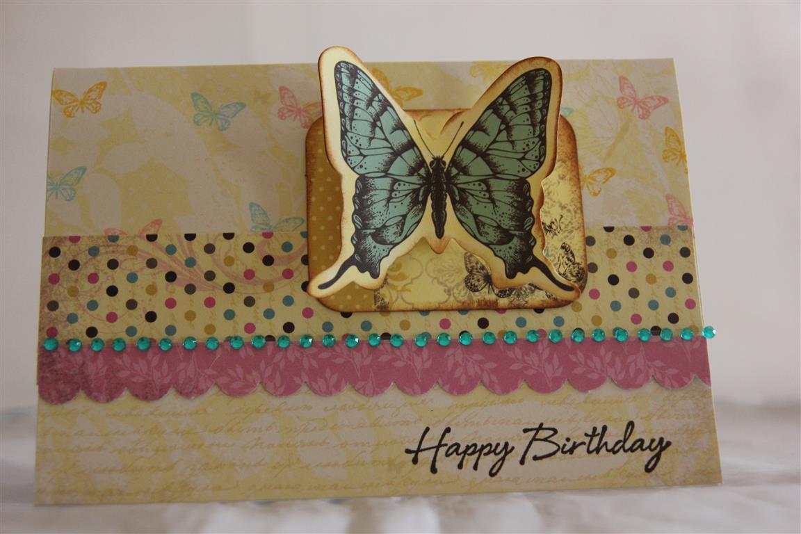 Early post today, as I missed last nights post as I couldn’t move with a sore leg – all is well today though and I have spent a lovely morning in the craft room. Todays card is made using kaisercraft Botanical Odyssey paper pad and collectables – my favourite recent range release – it is right up my crafting alley – love anything to do with nature.I just added a kaisercraft bling strip on this one, and stamped it with a hero arts happy birthday stamp , and sponged in Vintage photo ink around the edges of everything!I am now making a 40th birthday card, for an order, but have hit a snag deciding what my lady meant when she said retro – to me thats 60’s, but I’m thinking she might have meant 70’s and that’s two different eras with two different styles – I’ll just go back into the craft room and create until something feels right! Til tomorrow…