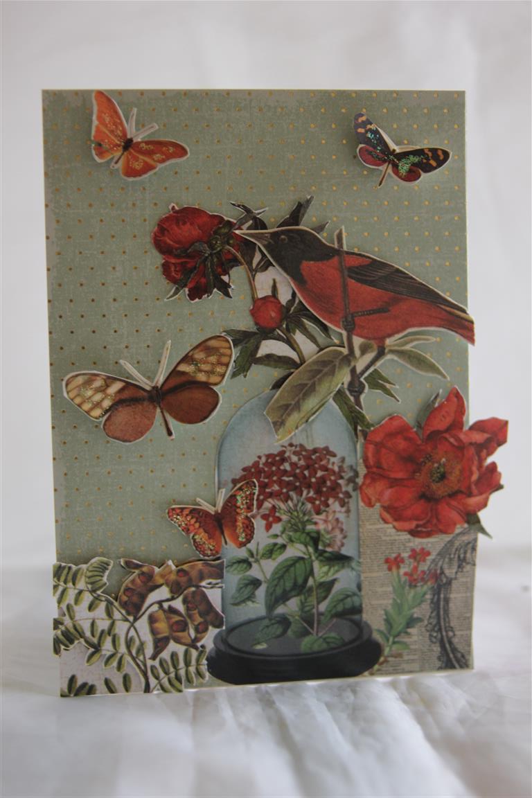 I have been enjoying the under the Dome series on tv just now, and as we are nearly at the end of it I thought it was fitting to post this card which I made with Kaisercraft Curiosity collection. this card is a mix of the papers in the 6″ pad and a sheet of the 12 x 2 paper which I fussy cut the imagery from.Butterflies are also fussy cut and the gorgeous bird is from the matching collectables. I loved this paper when it was released, but this past week has been the first time I have been able to play with it. I have a few made to show you all this week, and hopefully I find some time to get back to playing with it soon! Til tomorrow….