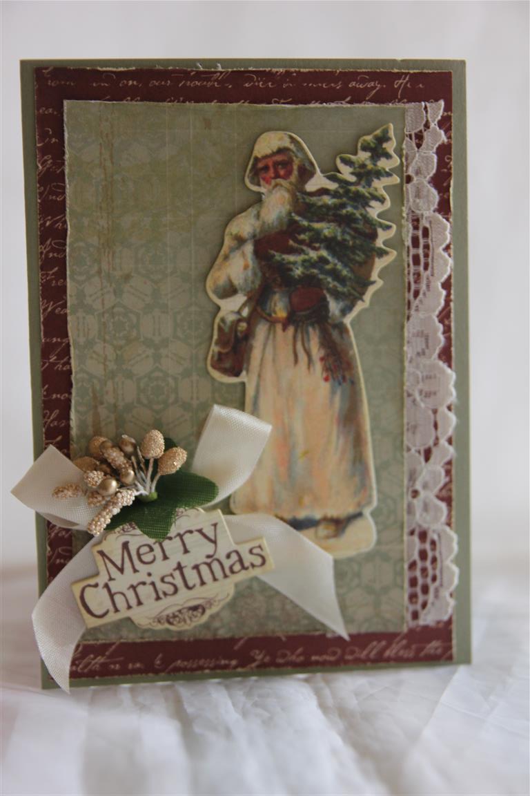 i went vinatge with this one – Papers and collectables from Kaisercraft St. Nicholas collection, and I distressed all the edges with my distressing tool, and added some lace a seam binding ribbon and a little bunch of xmas type flowers to finish. No crafting tonight as I have a work function, speaking of which I must make tracks…til tomorrow….