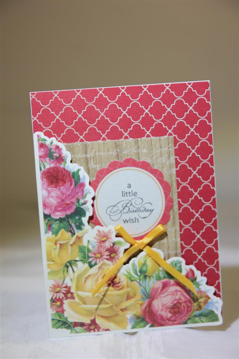 These bright colours certainly make a change from all the shades of red and green we have been working with! Both of todays cards use the 12 x 12 papers from the Tropical Punch collection by kaisercraft, and I also used some collectables from the same collection on the top card. Flowers, ribbon, stampin up greeting stamp and fussy cutting ( on the bottom card) to finish.Til tomorrow……