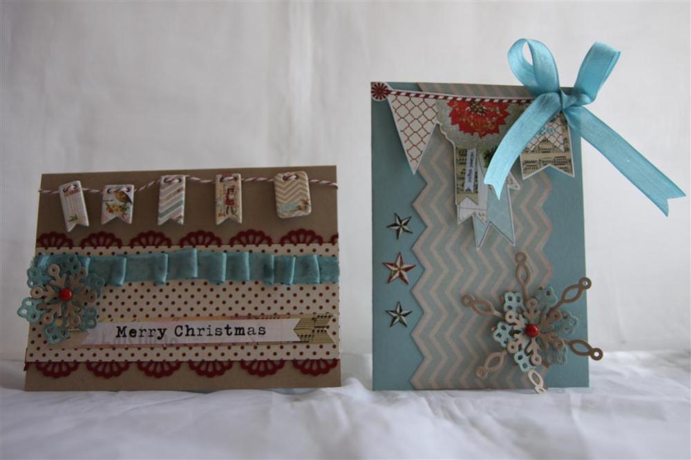 Here are the last two cards in my My Minds Eye All is Bright series… tomorrow onto something else! The card on the left makes good use of the sticker sheet that matches this paper, and I have added a little seam binding. the cardstock is Stampin Up Cherry cobbler. The card on the right is purely paper, with some snowflakes die cut with Spellbinders 2012 snowflake pendant dies. The cardstock for this one is Stampin Up baja breeze. Nathan and I had a marathon photo session today, so tonight I will be sorting out all the photos, and will have new cards to put up. Til tomorrow….