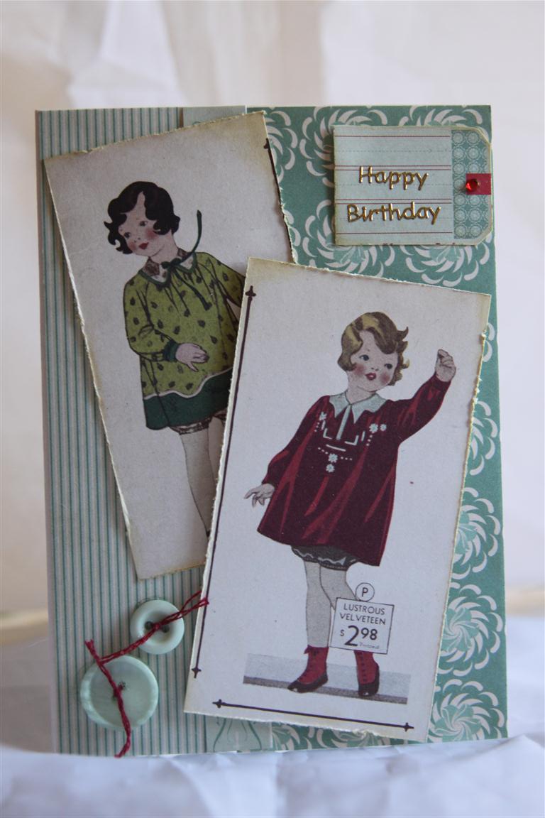 This card was made a little while ago using Cosmo Cricket Odds and Ends patterned paper and just a couple of buttons.I had to rumage around in my drawers (Dad would have a field day with that one ladies, but you all know what I mean)Â to find out the name of the paper for this post, and discovered a 6″ paper pad, barely used, and an elements sheet to match, so I will be revisiting this paper in the near future! Til tomorrow…..