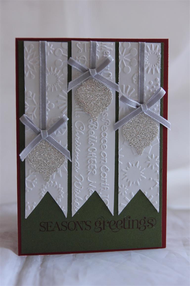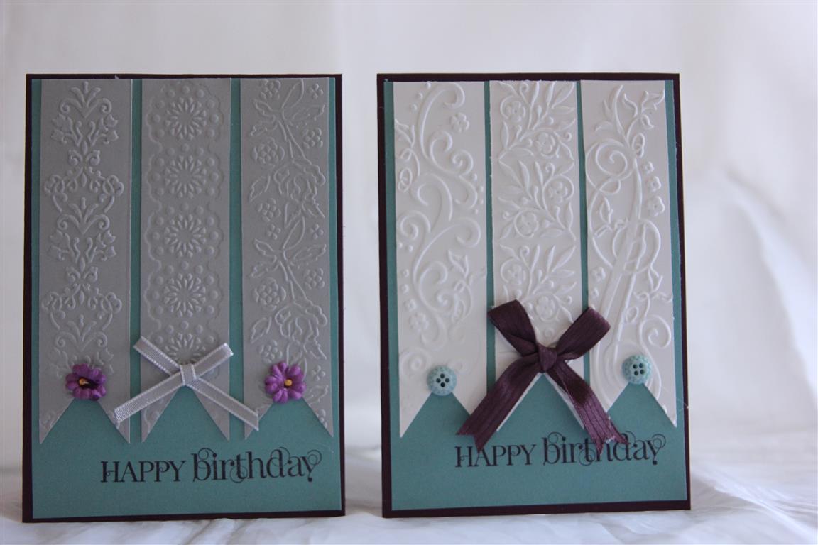 These cards came about because I wanted to use the new stampin up cardstock – blackberry bliss and lost lagoon on a card together as I liked the way the colours worked. I also had some very slim embossing folders, probably meant to be used as borders, but here I cut thin white card strips and embossed a different pattern on each one. embellishing with ribon, flowers and buttons followed. I liked the look so much I tried the same sketch but with a christmas theme.Curly Cute stampin up greeting stamps finished all cards . Quick post today as I must get off to work.. til tomorrow…..