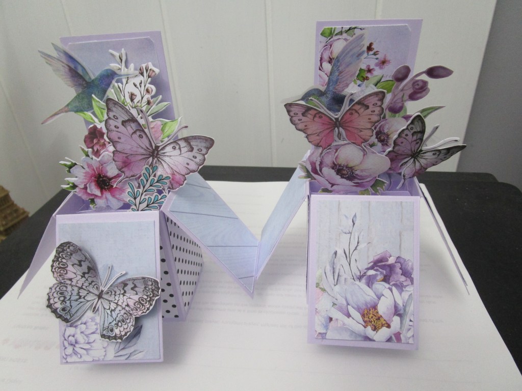 This week I made half a dozen folding box cards. These cards are terrific because they fold flat into a normal envelope, and are quite easy to make once you have the hang of the measurements. I have made a youtube video showing how to make, and all the measurements you need. You will find it on Youtube at Helens Card Designs. The papers I have used are from Uniquely Creative and the collection is called Tranquility. This paper was perfect as it has lots of images the right size for the boxes, and the mix of flowers, butterflies and birds allows a good choice to put in your box. I have had a busy couple of weeks.. I taught my retirement village ladies, just got that class in before we all went on restrictions again due to covid. Luckily so far we have avoided an outbreak in our state, but I certainly feel for the other states who are confined to home again. That is when our hobby becomes a sanity saver! the weather has certainly turned to winter, and the heater is running here a lot, but I do not complain about the cold weather and the nice drop of rain we have had. Til next time, stay safe…