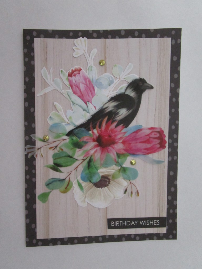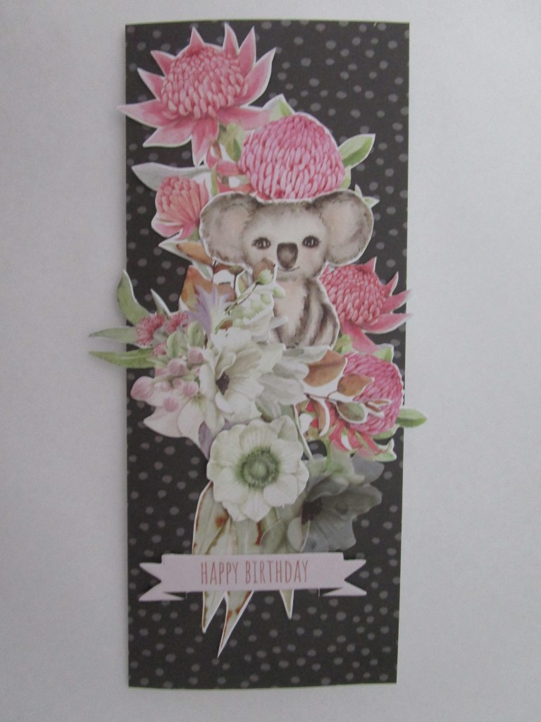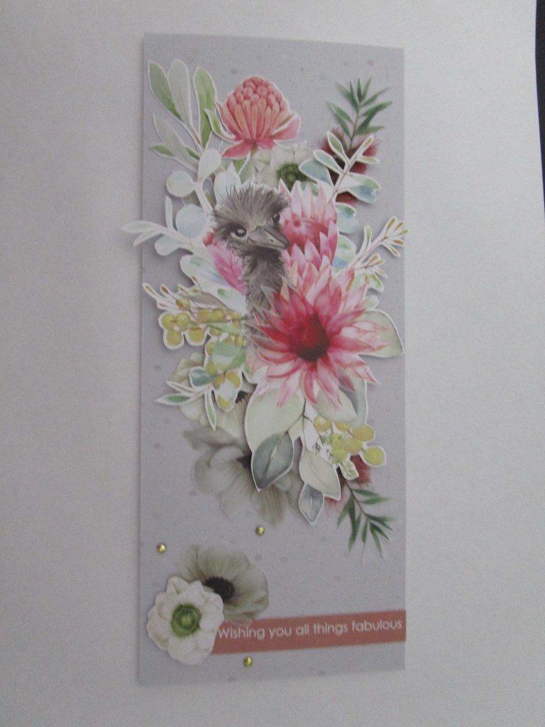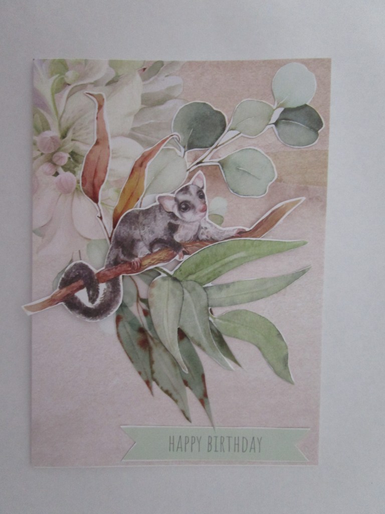 I have used about half of this collection, so it will be brought out again! I have loved working with the cute little Aussie animals and birds and the papers haven’t needed much more additional embellishment. On these three cards I have only added extra flowers ( to one card) and some glittery die cutting. I keep saying I am going to start Christmas cards and then get distracted. At the moment I am busy putting together some cardmaking kits for my retirement village ladies. I can’t visit to teach them but they can do my kits easily enough. Where would we be without our hobbies ? In the meantime , stay safe, til next time….
