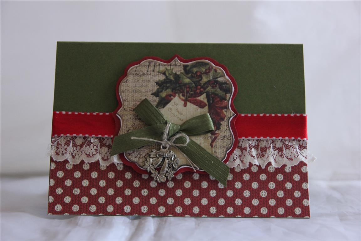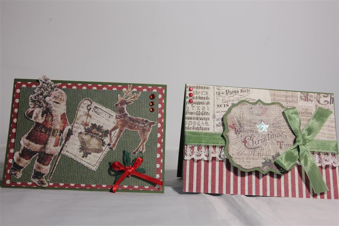 Thank you to everyone who sent me wishes on hearing my Dad wasn’t well. Thankfully he is back to his normal self now, and just resting at home.Cards today are the last few I made with Fabscraps Christmas paper.For these ones I just focused on the paper, and added some chipboard, seam binding,lace buttons and bling.I taught a lovely class of ladies this morning – it was just the tonic I needed after a stressful couple of days, and I am hoping to see the inside of my craft room over the next couple of days because I am so far behind with my Christmas cards, still have about 100 to do, so its going to be a big push to get them all done this year. Til tomorrow….