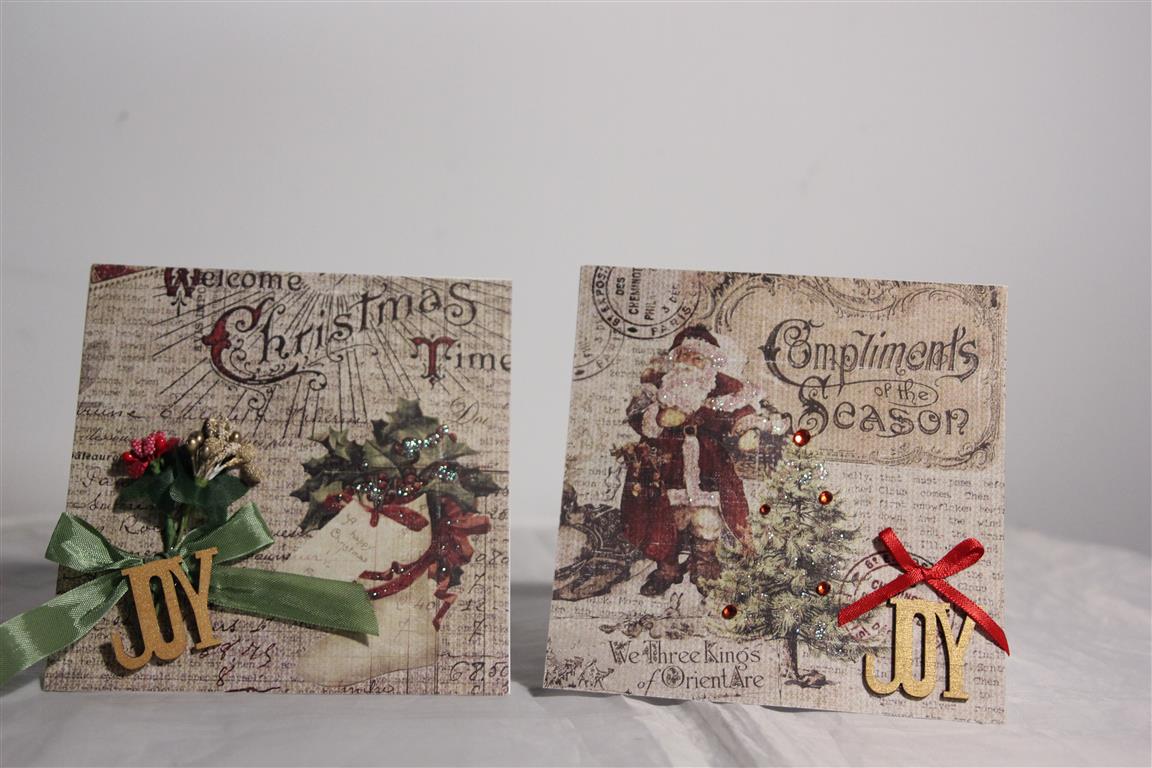 I have been missing for a day or two because I have been busy with my dad – he took ill and was admitted to hospital,but I brought him home this morning and he is back to his cheeky self, so much relieved!I have posted a few cards to make up for it though and these are all made with a couple of sheets of Fabscraps xmas paper. One sheet was entirely tags so I made good use of them and that stretched the paper to make quite a lot of cards. I have added assorted ribbon, lace and charms to finish.Today is going to be a lazy day catching up on some lost sleep. til tomorow…..