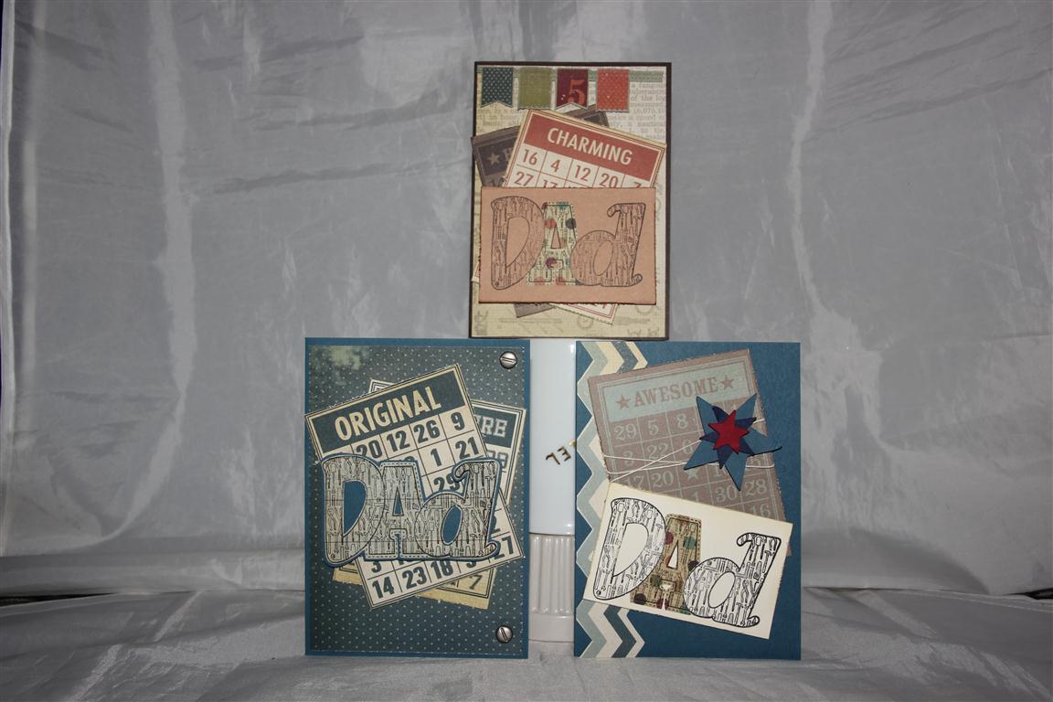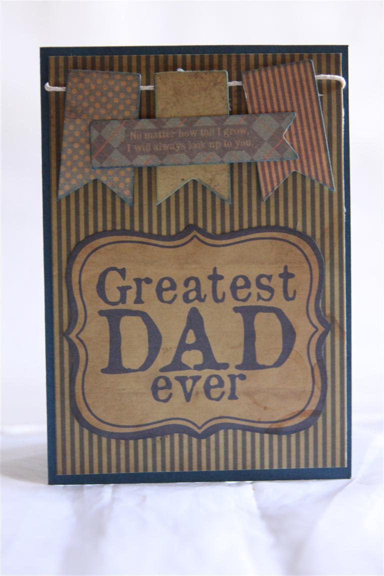 With fathers day just around the corner now I thought I would show this group of three fathers Day cards that I made using Simple Stories Awesome papers, and my Docrafts papermania Dad stamp. The general theme is the same, just swapped around the colours, and used Stampin Up cardstock for the base card. On all the cards i stamped the Dad stamp a few times and fussy cut the letters out to mix and match .Some flags were fussy cut from the papers, and twine and brads were also used. Today I finished some christmas card ideas I had floating around, and now I am ready to head to the craft room to create some bright sunny cards in the hope that it encourages the real thing to show itself – It has been an amazingly wet ,cold and dreary winter, and I am ready to see a little sunshine! Til tomorrow…