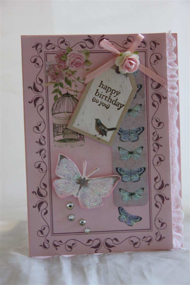 These two cards are made with Kaisercraft True Romance – the 6″ paper pad, and some fussy cutting from a couple of the 12 x 12 sheets.I added a delicate ribbon bow, lace,and some Kaisercraft pearls to finish. The sentiment stamps are from Stampin Up.The top ard uses some of the colectables from the matching pack.Must go before dinner is cooked to a crisp! Til tomorrow….