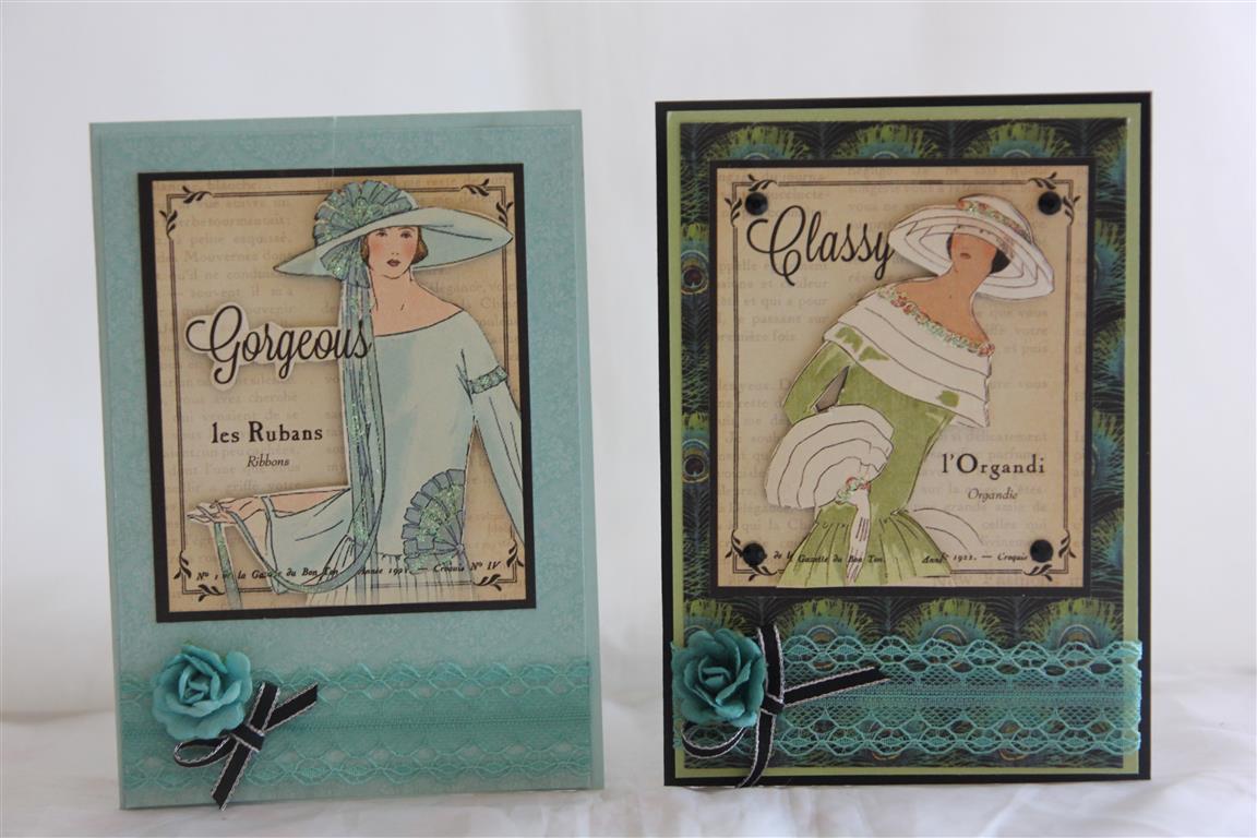 Another 2 cards from the same 12 x 12 sheet as yesterdays cards, from graphic 45 couture collection.Again I cut a second image and 3’d the lady images.The card bases are made from stampin up cardstock, and I added some gorgeous lace, ribbon and flowers to finish.I was out and about in the heat today, but did manage to make 6 cards from the new kaisercraft Violet crush before I went out. That paper is lovely, and I can’t wait to get back to it but tomorrow I will be planning out my march lessons.Til tomorrow….