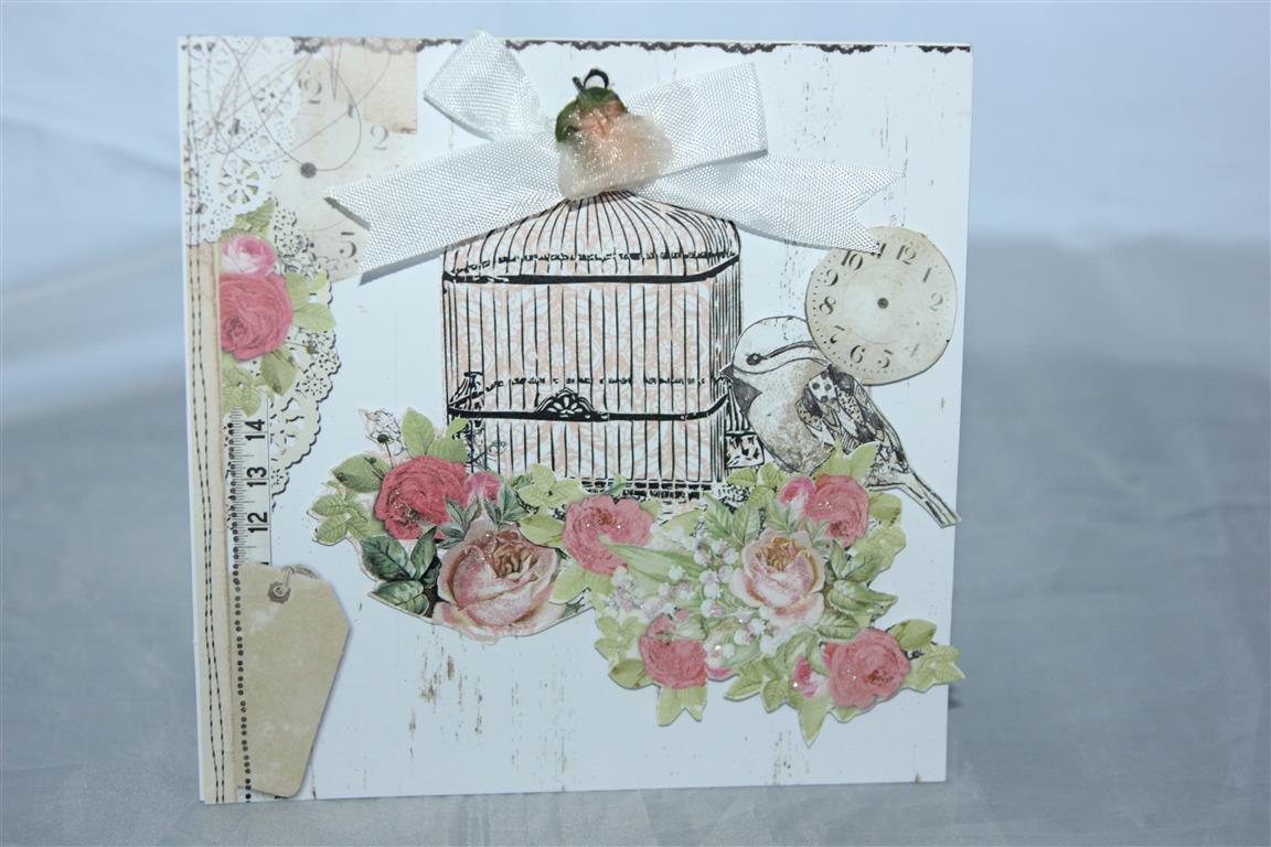I did quite a bit of fussy cutting on this card – The flowers were fussy cut from a piece 0f the 12 x 12 papers ( all paper is from Kaisercraft curiosity collection) and the have a lovely gloss finish on them.I also fussy cut the butterflies and the border. I layered up a couple of labels from the collectables pack, and added some lace and ribbon to finish.Taught a lovely class of ladies today, always nice to finish the working week having fun! til tomorrow….