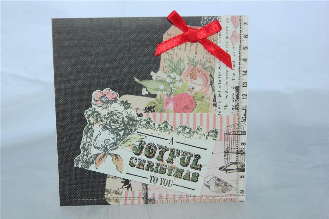 Hi all, sorry I have been missing for the last few days – we have no internet at the moment and apparently it won’t be back until at least tomorrow, but thanks to the wizardry of Nathan I have been able to post this one and hopefully regular service will resume shortly! I didn’t realise how much I relied on the net until now.On to todays card. The paper is Prima Lyric – not made specially for christmas, but I thought the colours worked! A little bit of fussy cutting, bright red ribbon bow and a Stamp It Joyful Christmas stamp and there my first christmas card for the year. Tomorrow, if I am back on line we will move on to something else! Til tomorrow…. hopefully …..