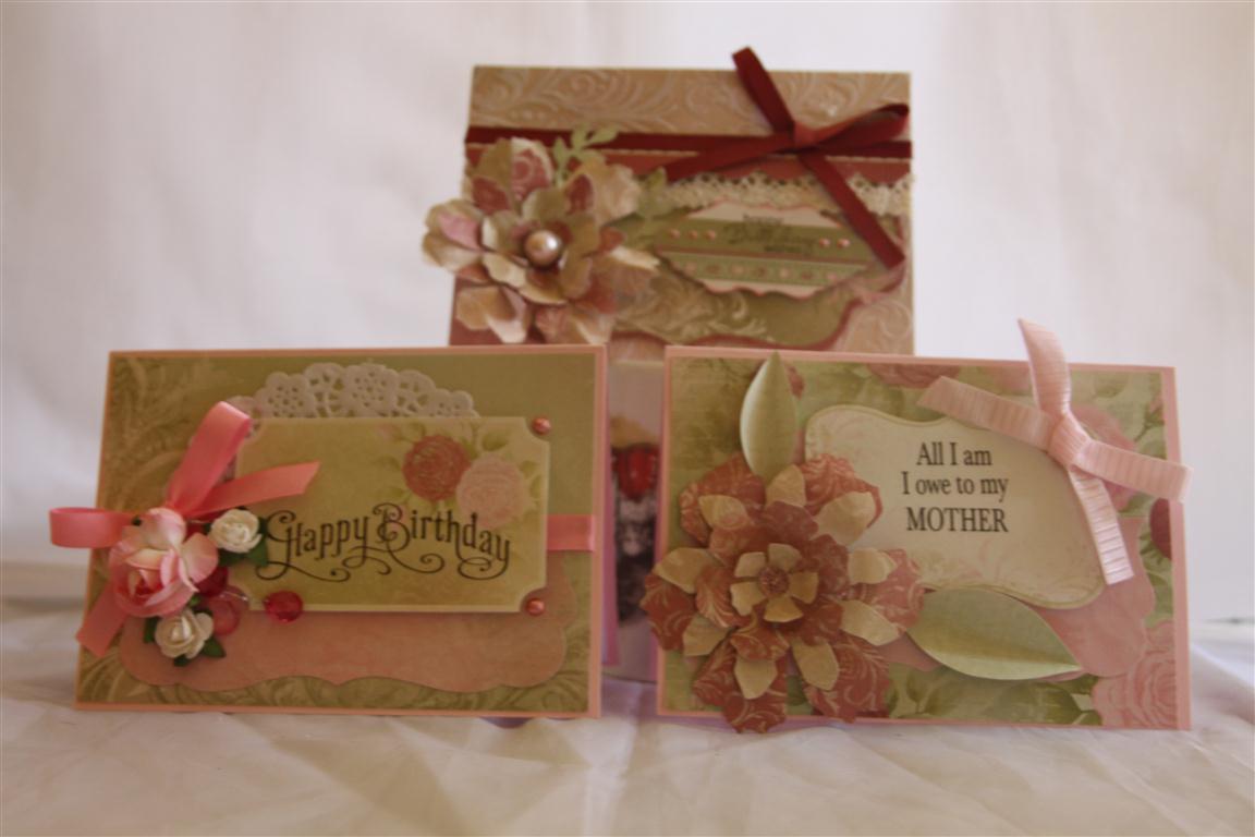 I farewelled this paper some time ago, but Nathan and Ididn’t take any photos this weekend, and I was going back through my files to see what hadn’t been posted yet, and I found this group of cards, which is – I promise – the last of kaisercraft English rose paper ( mainly because I haven’t got any of that paper left) and a collection of ribbon and flowers, and some sizzix tattered florals made with my cuttlebug.I am looking forward to spending a few hours in the craft room tonight, I really haven’t had time for a nice long card making session all week, and have quite a few ideas I want to try out. Til tomorrow….