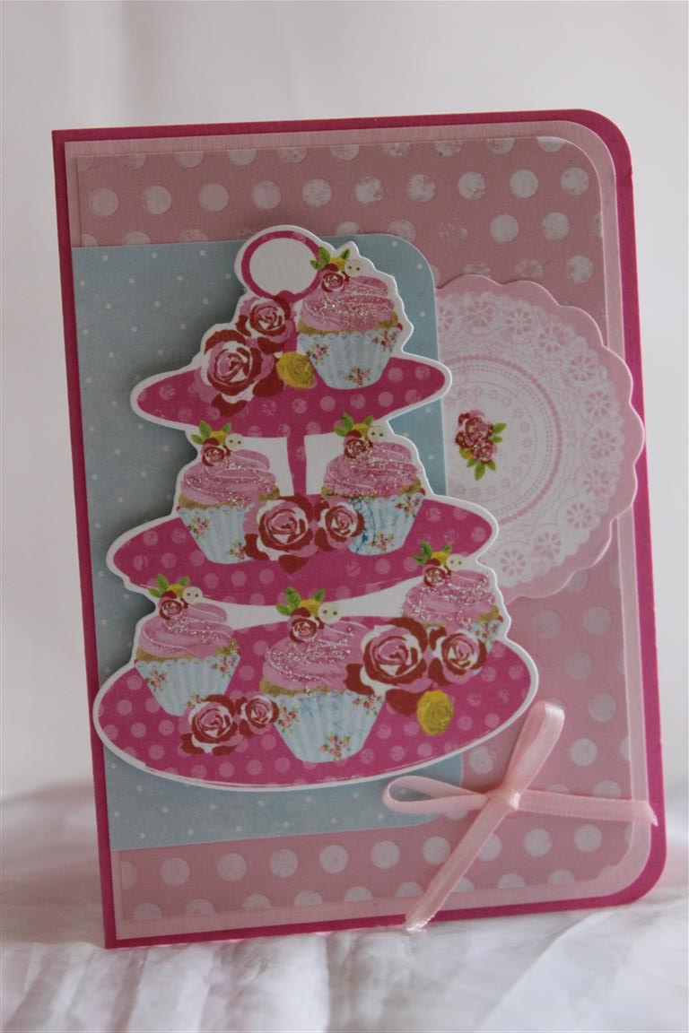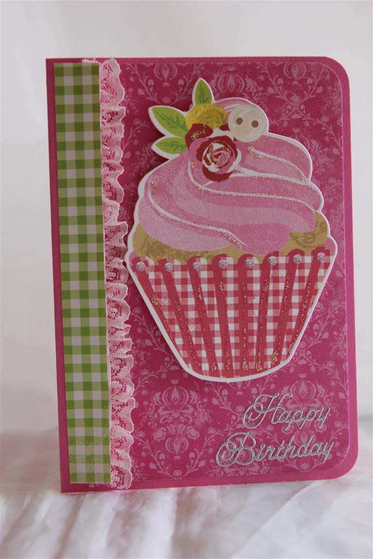 i am loving the bright colours of this paper _ kaisercraft Tea Party. Here I used the 6″ pad for the bottom layer on stampin up cardstock for the card base. The cupcake is from the collectables pack, and I added another strip of paper down the side with some lace. I added some kindyglitz to the cupcake for some bling. I am busy today making some card for an order, a few more to do, then plan out my december lessons! til tomorrow…..