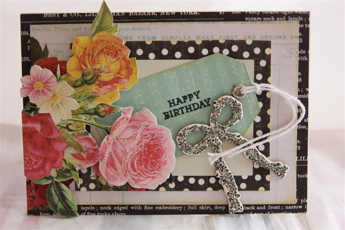 This is the final card in my Prima Anna Marie series. I used the papers along with one of the matching tags ( which I stamped with a stampin up sentiment stamp) a piece of the chipboard and I fussy cut some of the flowers from another piece of the paper, and layered them up on the side.tomorrow christmas cards! Til tomorrow….