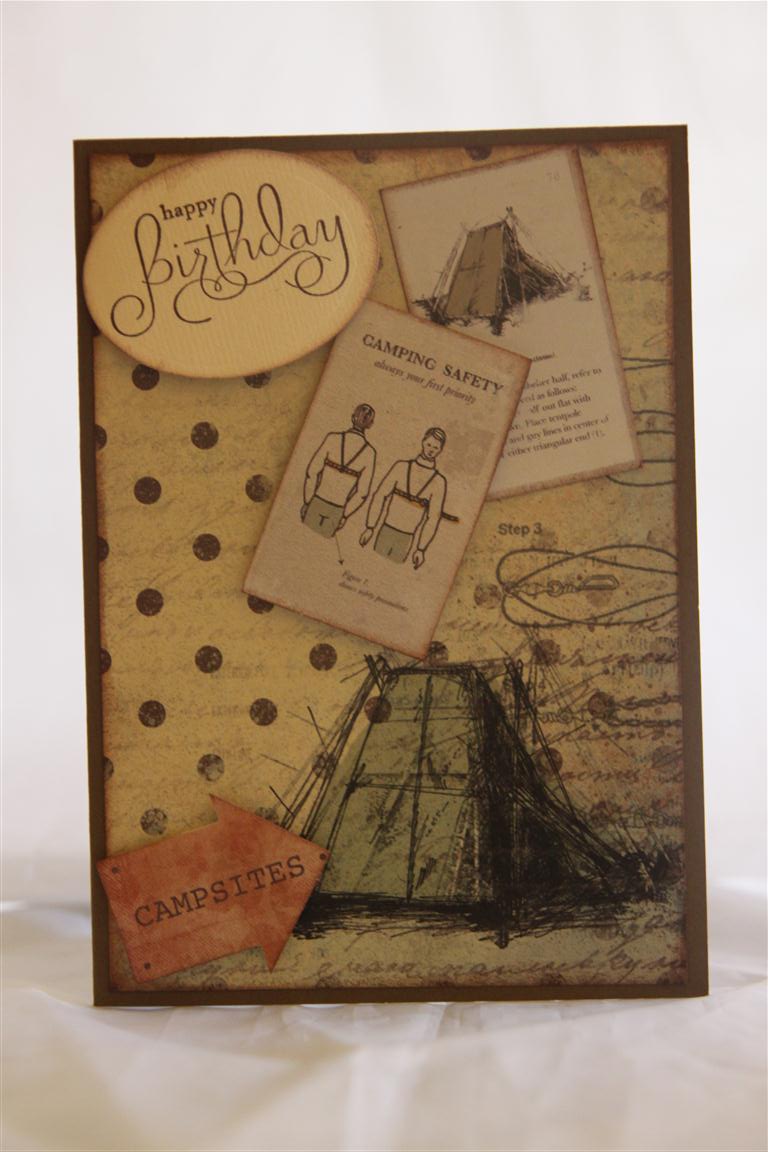 While I had Kaisercraft Hunt abd Gather paper out making the previous post card I quickly whizzed up this camping card. The cardstock is Stampin Up soft suede, and the sentiment is a stampin up one too.I taught a lesson this morning, and I have spent a little time this afternoon in the craft room doing some girly fairy cards ( I am having a little break from Mothers day cards). Back to work tomorrow, so a little less creating will be happening! Til tomorrow….