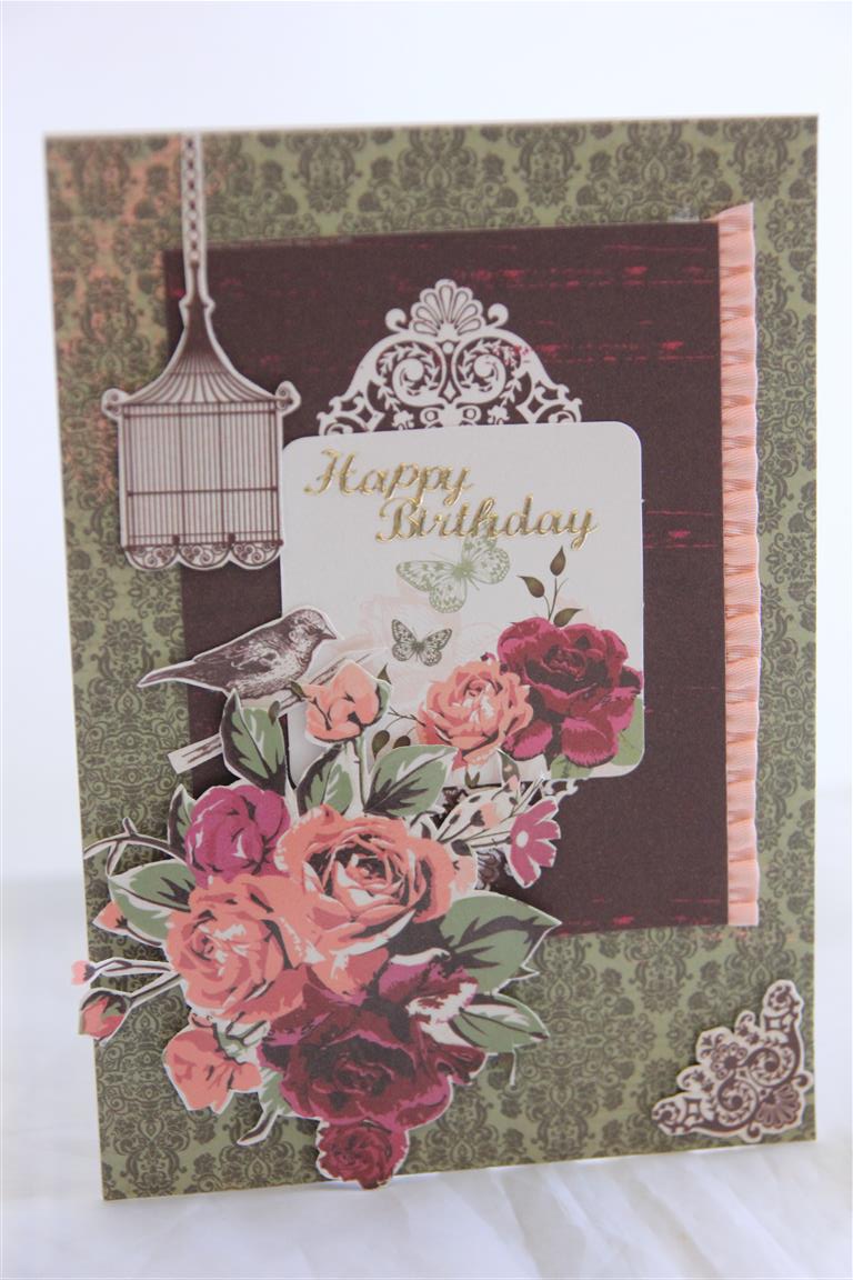Today we are starting a new series, Kaisercraft Lady Rose. I have made a lot of cards with this paper – once I started the ideas just kept coming, so we will probably have a little break half way through!On this card I used the 6″ pad, matching collectables, and just a little ruffled ribbon.Quick post tonight as my boys are taking me out for tea for my birthday. Til tomorrow….