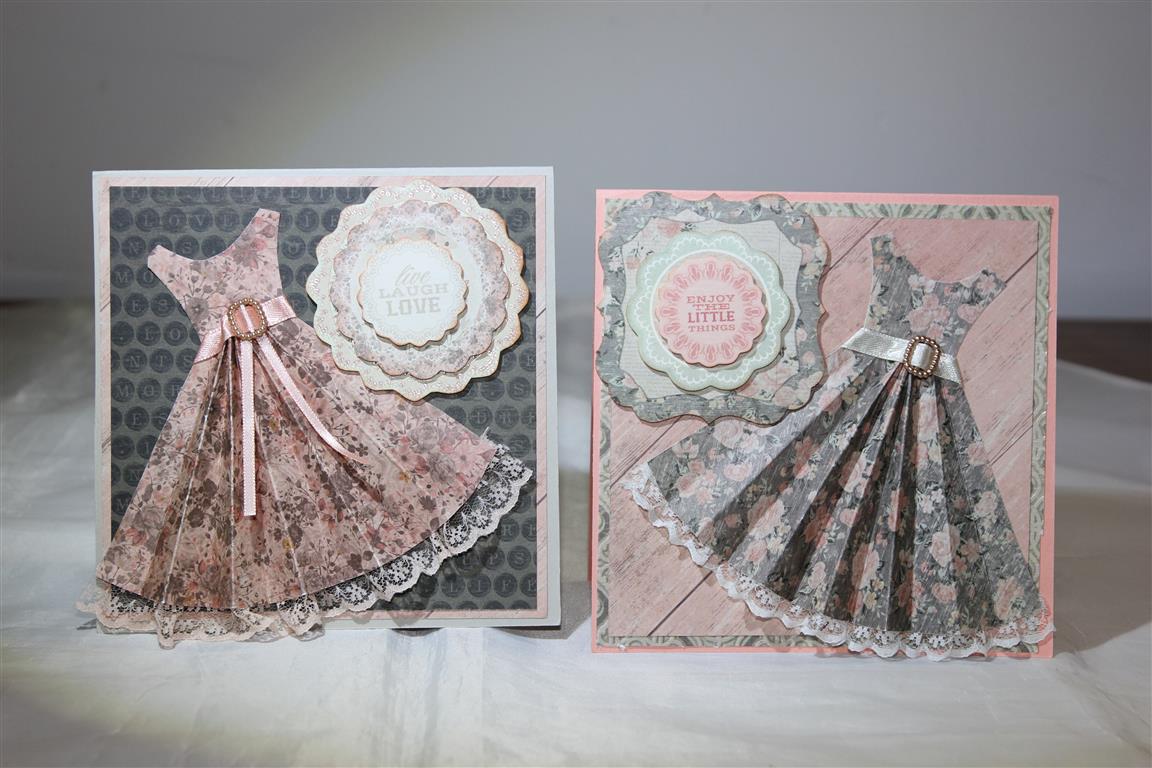 A new collection today – made with products from Kaisercraft Rustic harmony collection.The top photo shows two card I made using a dress template ( the skirt is just a semi circle folded to create the pleats)and I added some lace and ribbon.The layered circles are from the 6″ pad and the collectables pack. the bottom card has some punching ( martha stewart leaf punch) and die cutting ( stampin up and spelllbinders flowers dies) ,ribbon, lace and collectables.Another really warm day here, and too hot for the craft room, may have to do some crafty shopping instead! Til tomorrow….