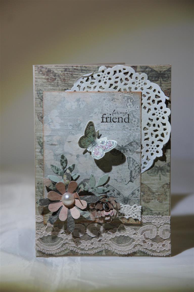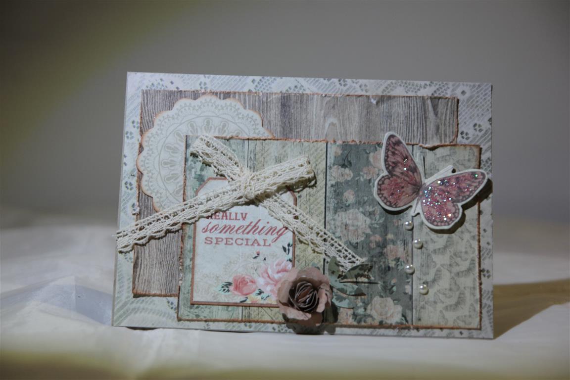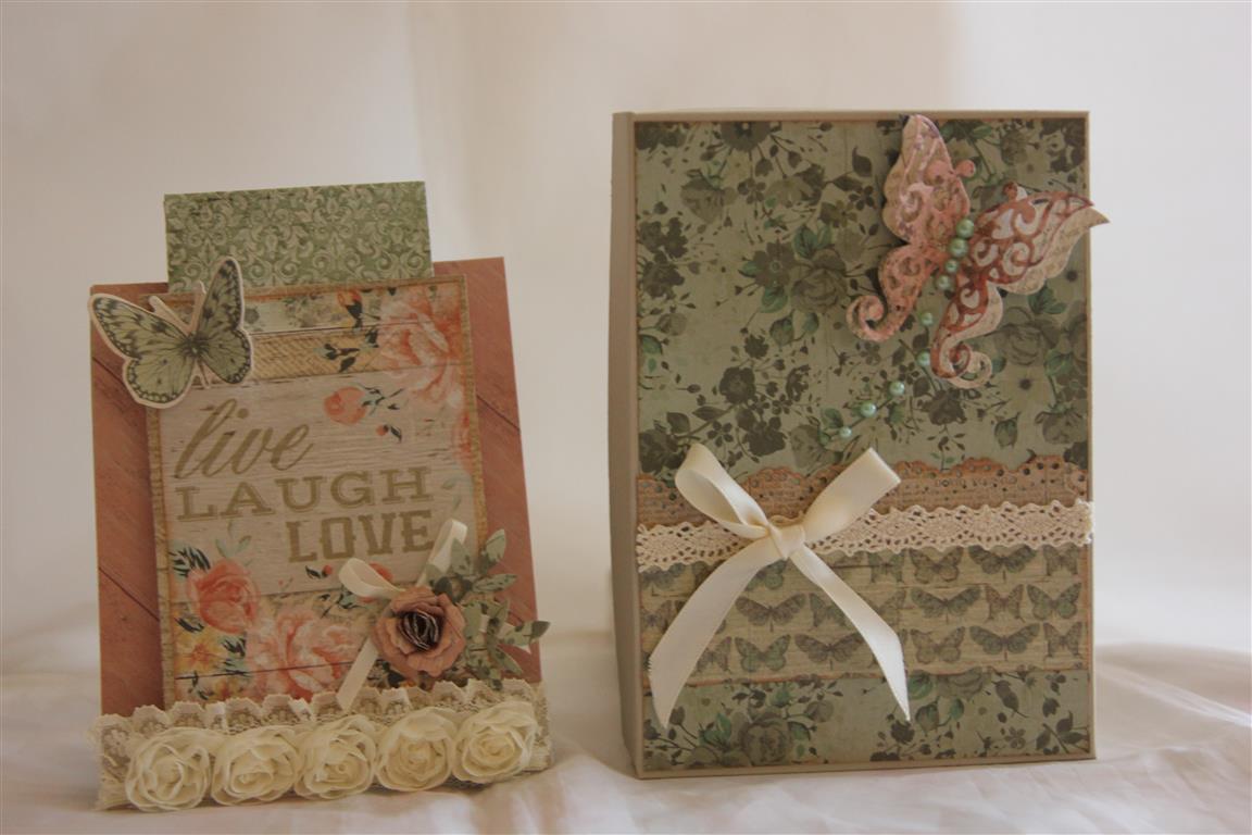 While I was making the stepper cards I made one with Kaisercraft rustic harmony paper, and then made a box to pop it into as it was quite bulky by the time I finished it.Lots of lovely lace trim on the card on the left, and a little more on the box lid on the right. I also used – martha stewart lace doily punch and leaf punch, spellbinders rolled roses and papillion butterflies dies,and Kaisercraft mint pearls.A lovely lazy day today, with a little crafting, and lot of relaxing! til tomorrow….
