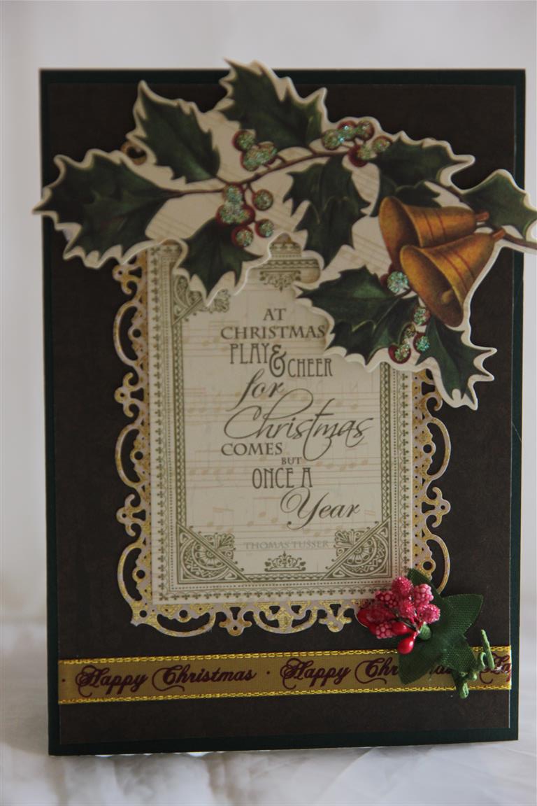Today i used some Stampin up cardstock for the base card, and a layer of paper from the kaisercraft St. Nicholas 6″ pad. The image in the right hand corner is from a piece of the 12 x12 paper which I fussy cut, and I tucked 2 little post cards from the collectables pack in behind it. I stuck a piece of cream seam binding across the top of the card and mounted a sentiment greeting from the 6″ pad on top. This afternoon I have finally had a couple of hours in the craft room , so i am working on some orders. It’s back to work tomorrow so i won’t get much time in there until the end of the week. Til tomorrow….