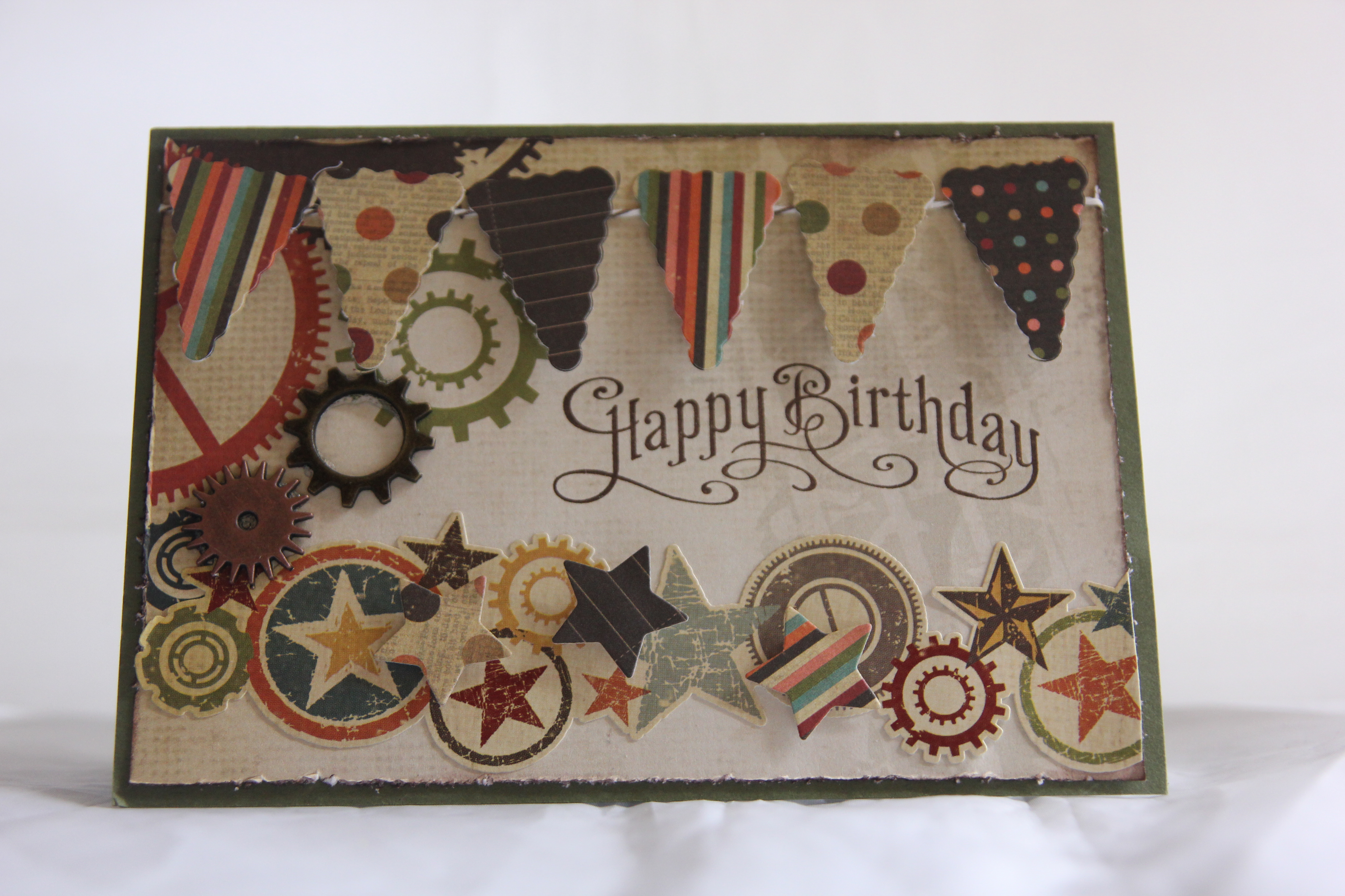 O.K. – I have lost track of the number in this series so I am calling it number 5…. The paper is Simple Stories Awesome, and here I have combined it with my Lacey Pennant spellbinders for the banner across the top, and I used a matching border sticker across the bottom. I stuck on a couple of Tim Holtz idea -ology sprocket gears, and distressed and inked all the edges.I taught a class over at paper flourish today – always enjoy my time with my ladies – and while there saw the new graphic 45 papers – a ladies diary collection – and couldn’t resist buying lots of it so tonight I am hoping tto spend a little time in the craft room creating with it – Til tomorrow….